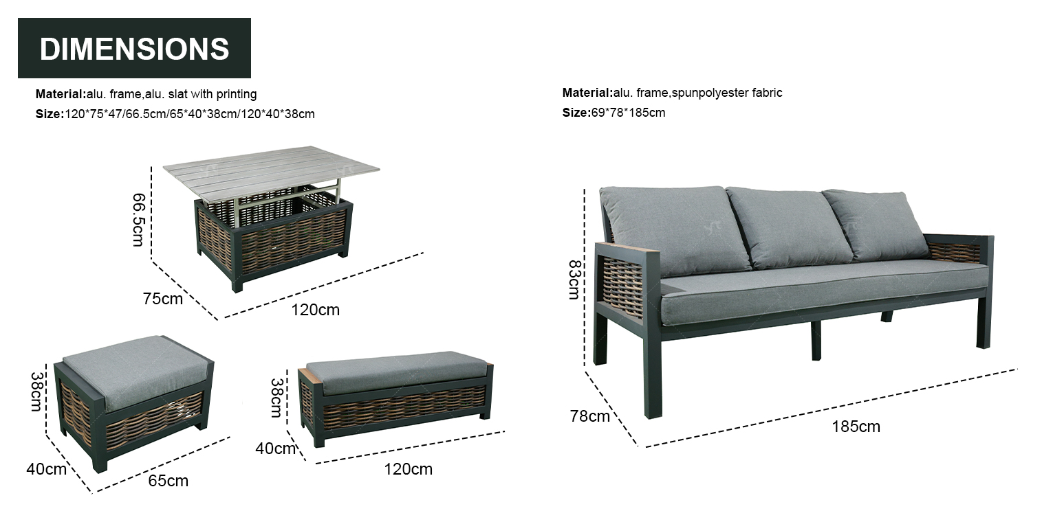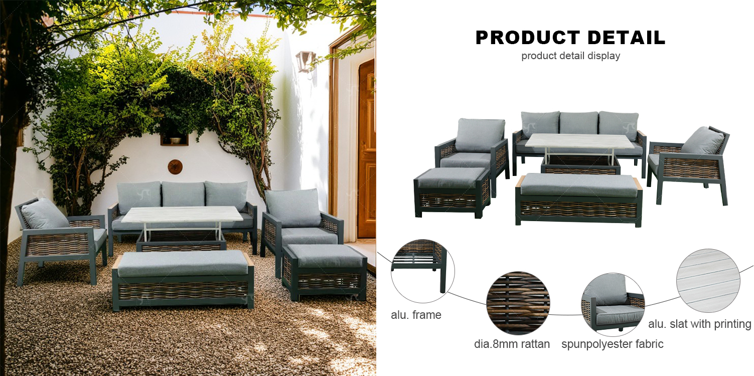 Outdoor Square Lifting Table Sofa Chairs Sets