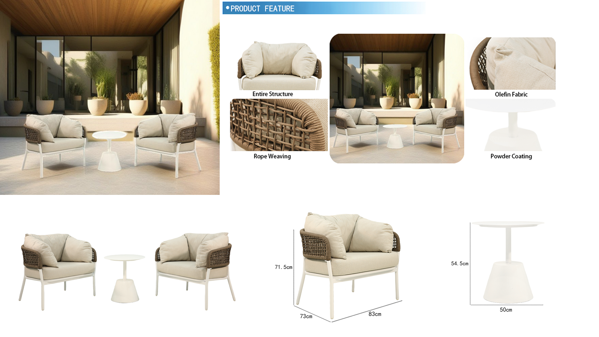 aluminum rope sofa set of 3