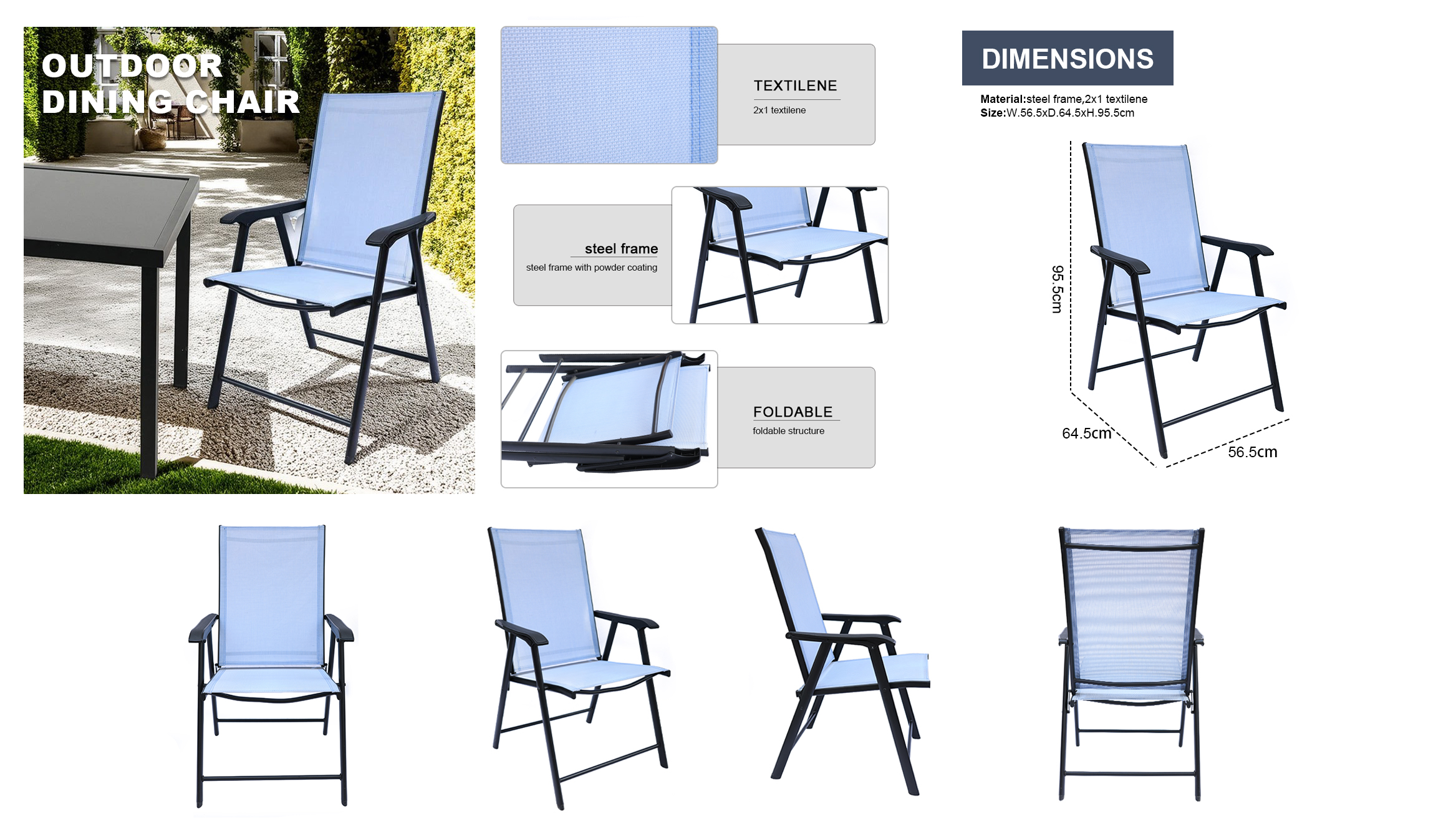 2x1 Teslin Modern Comfort Foldable Structure Metal Patio Chair with Arm Popular Outdoor Garden Chair for Park Use Fabric Design