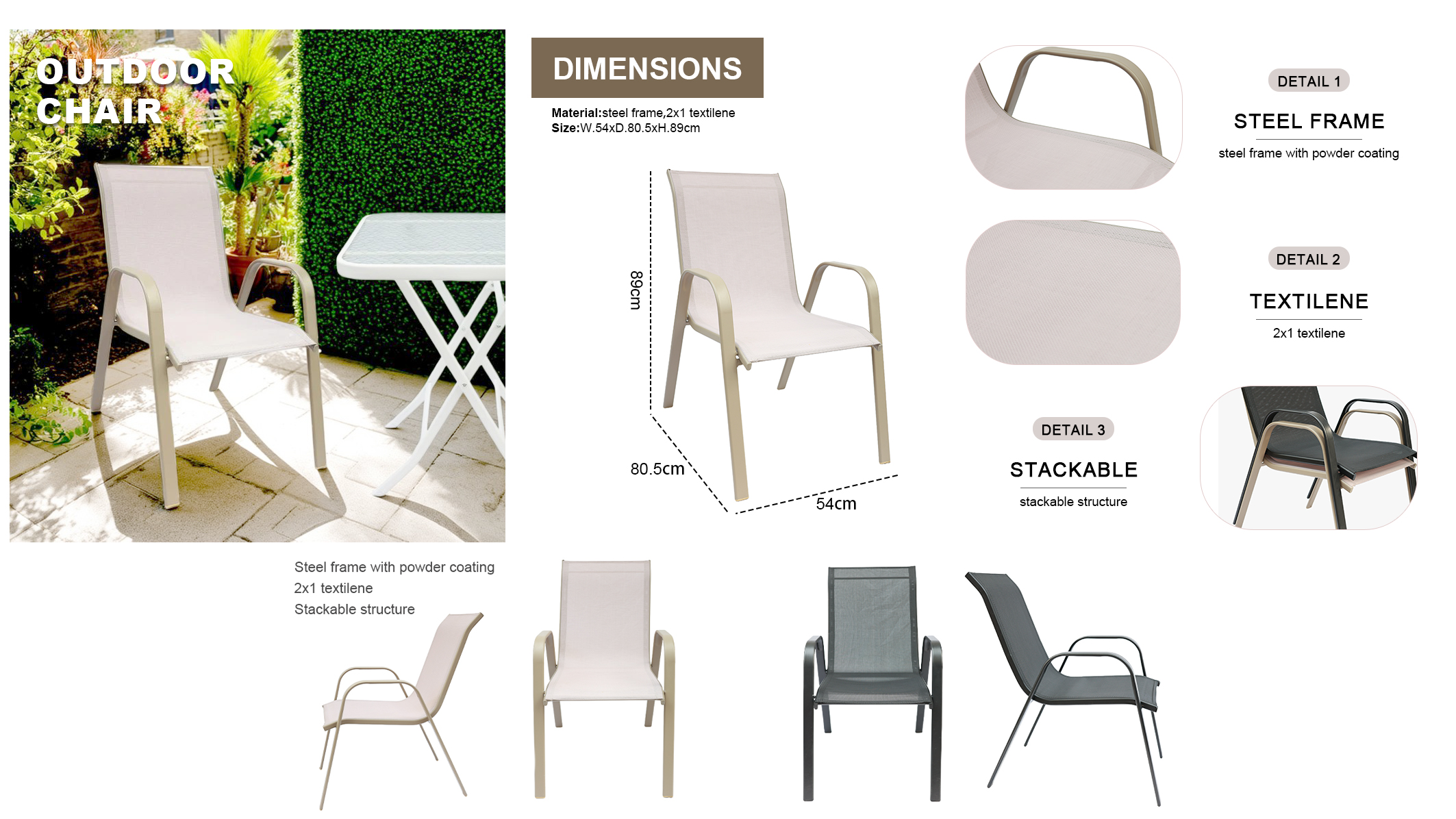 2x1 Teslin Modern Comfort Flex Metal Stacking Patio Chair with Arm Popular Outdoor Garden Chair for Park Use Fabric Design
