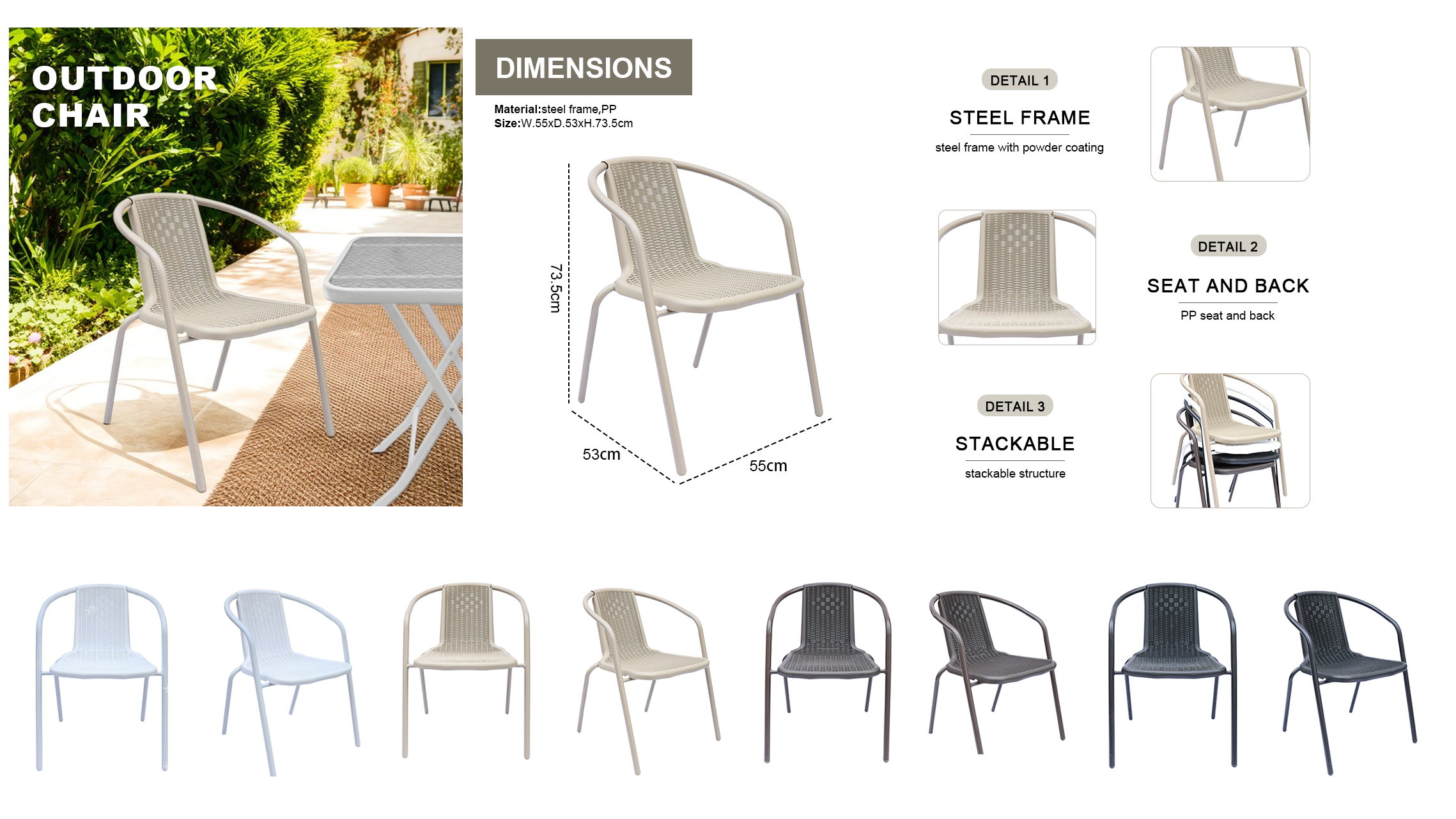 Outdoor Garden Steel Frame Stacking Patio Plastic Chairsteel ForPicnic Restaurante Plastic Chai WithPP Seat and Back