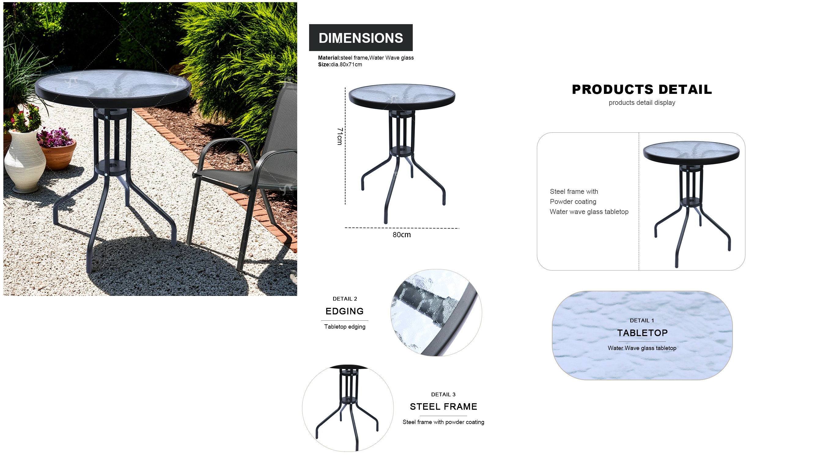 Outdoor Folding Patio Side Table Garden Round Table with Water Wave Glass Metal Steel Iron Dining Outdoor Table for Garden