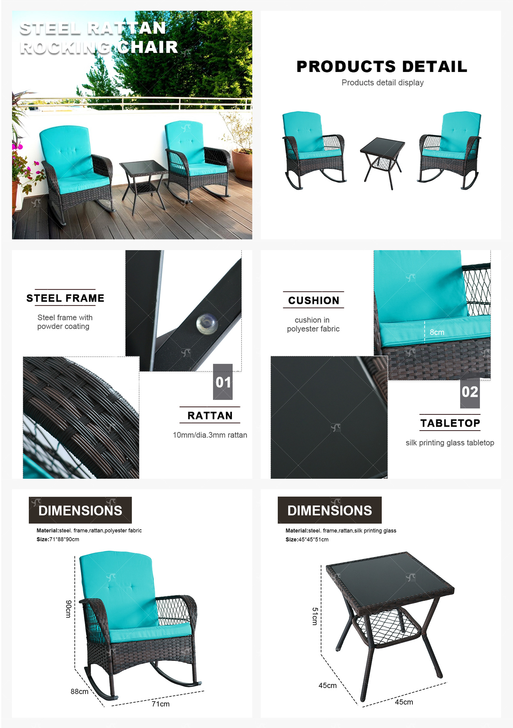 Steel Pipe Rattan Weaving Casual Three-piece Set with Sofa Chair Outdoor Garden Leisure Rattan Furniture Set