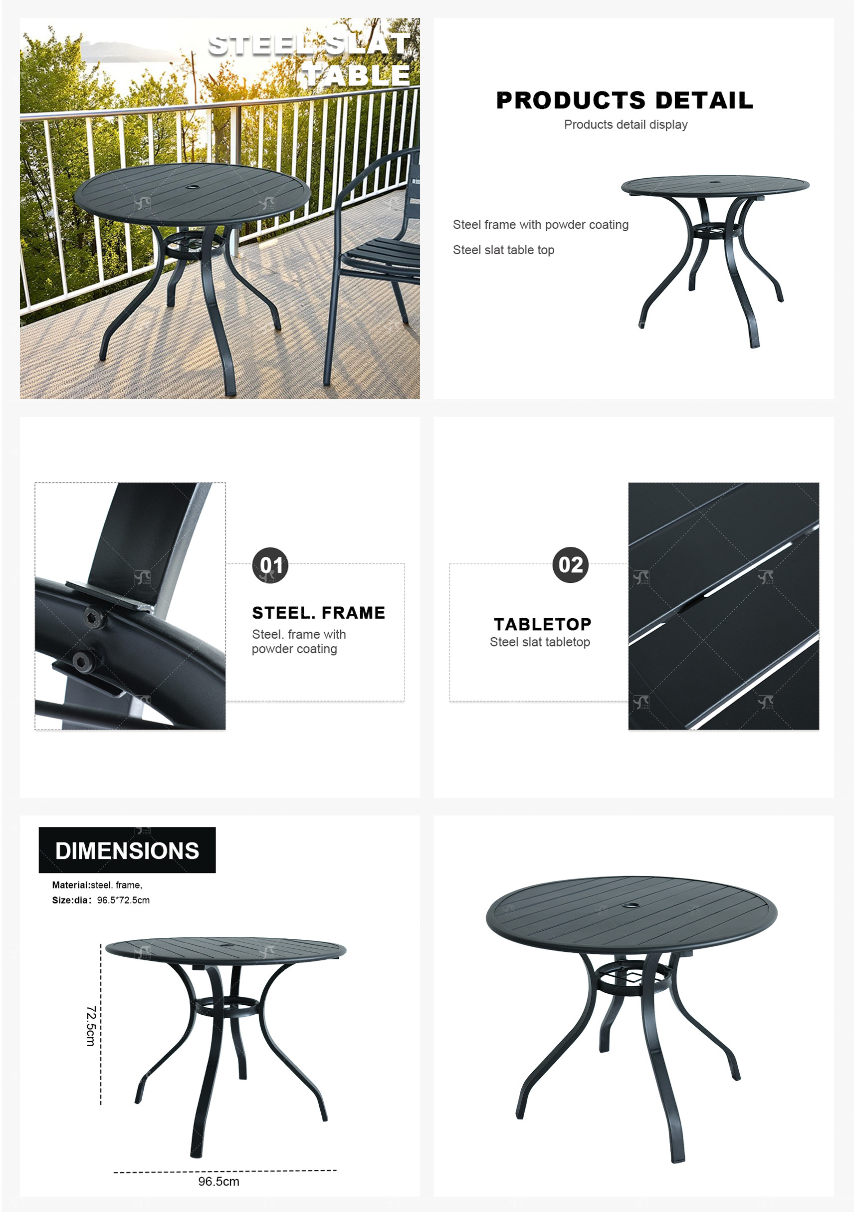 Outdoor Patio Round Table Garden Round Table with Steel Slat Tabletop Metal Steel Iron Dining Outdoor Table for Garden