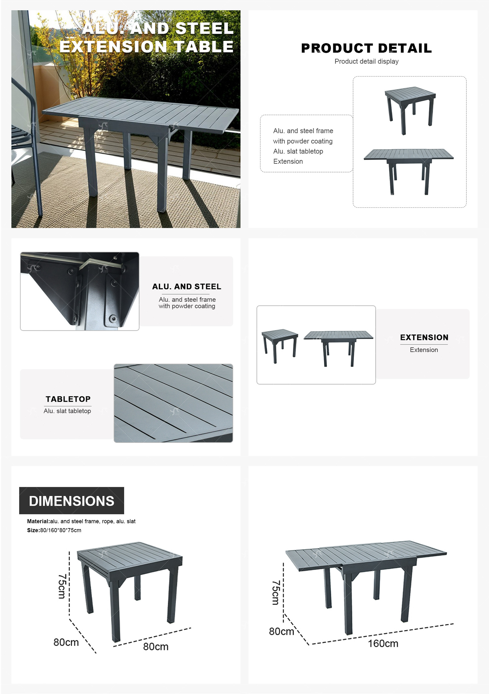 Modern Rectangular Folding Aluminum Extension Dining Table Durable Portable Outdoor Furniture for Garden Apartment Bar Use