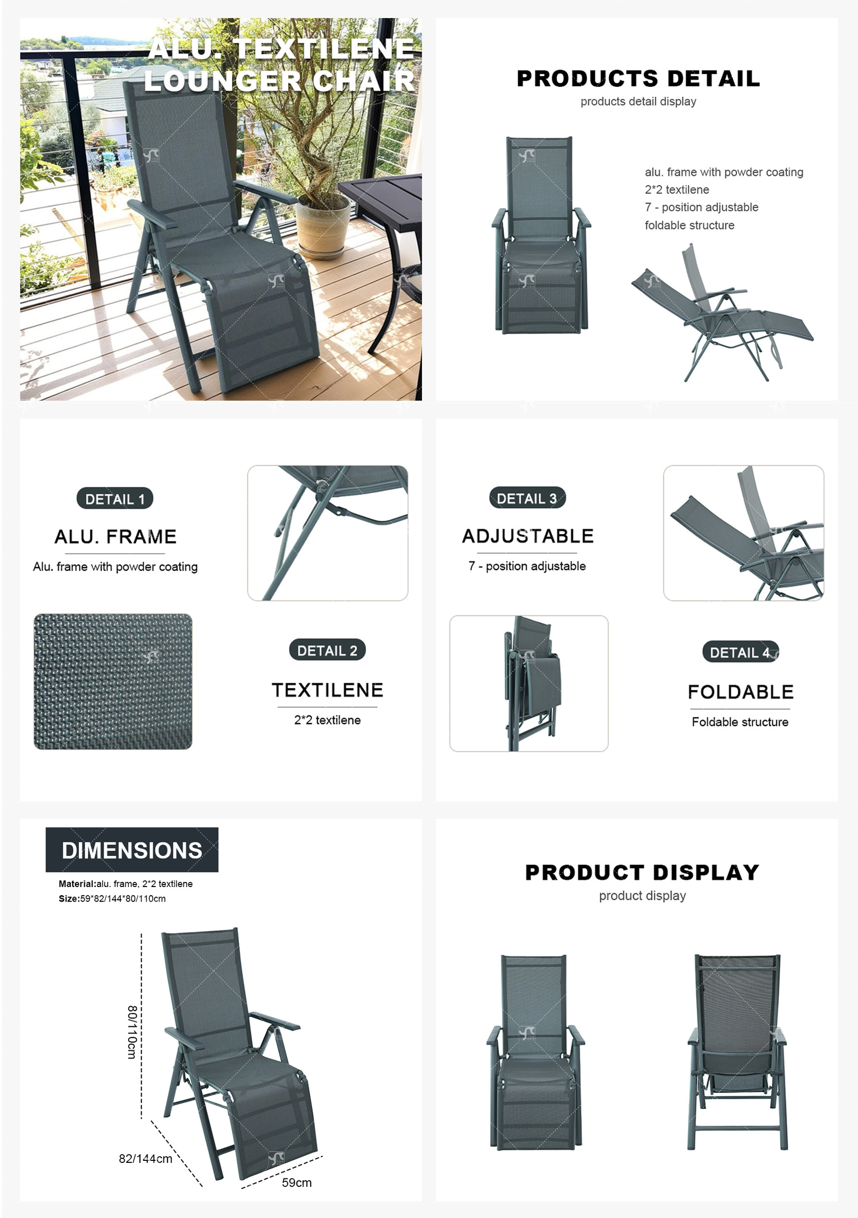 2x2 Teslin Modern Comfort Flex Metal Patio Chair with Arm Popular Outdoor Alu. Teslin Lounger Foldable Chair