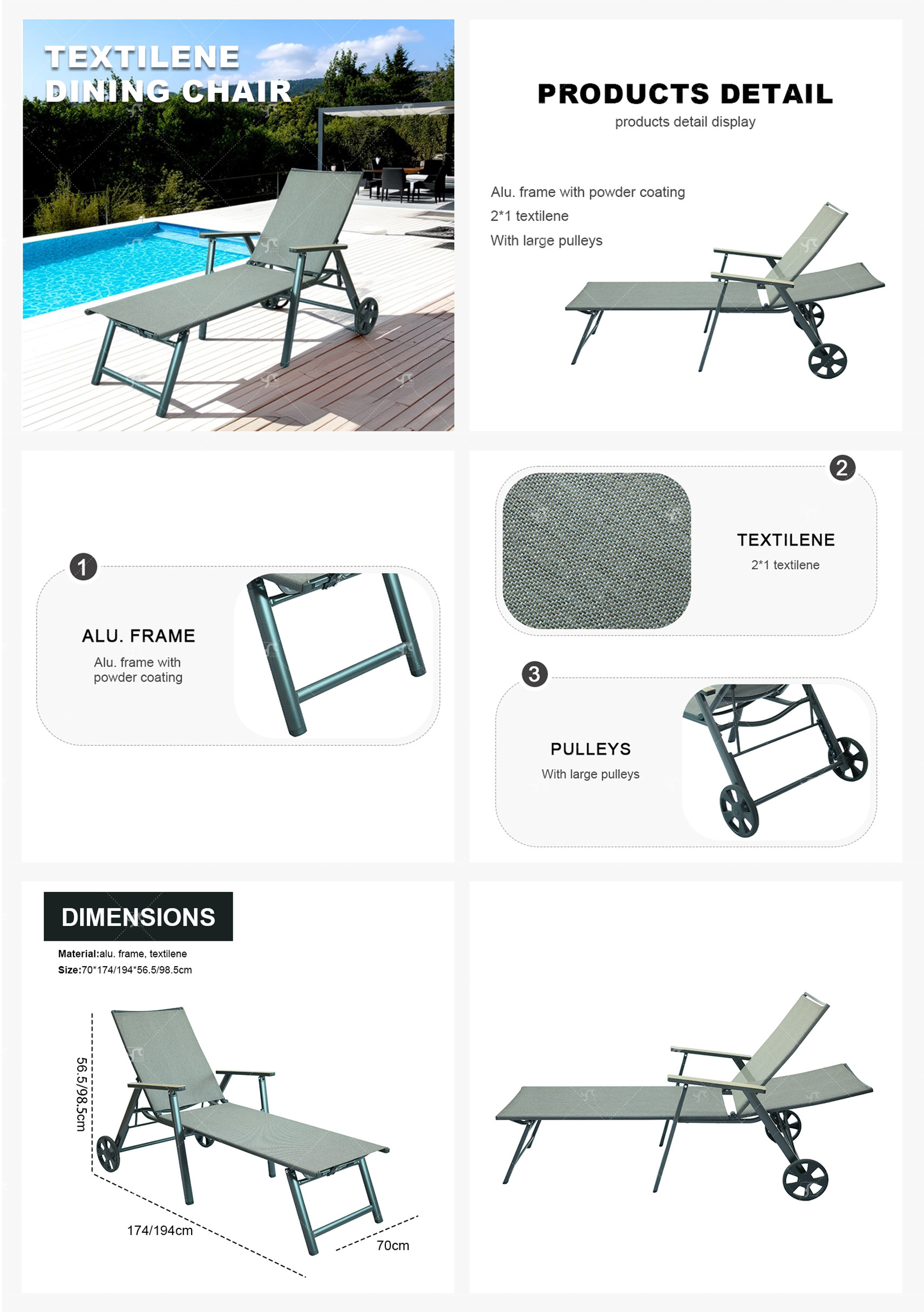 Hotel Modern Pool Outdoor Balcony Courtyard Luxury Wave Metal Frame Leisure Sun Lounger Chair with Pulley