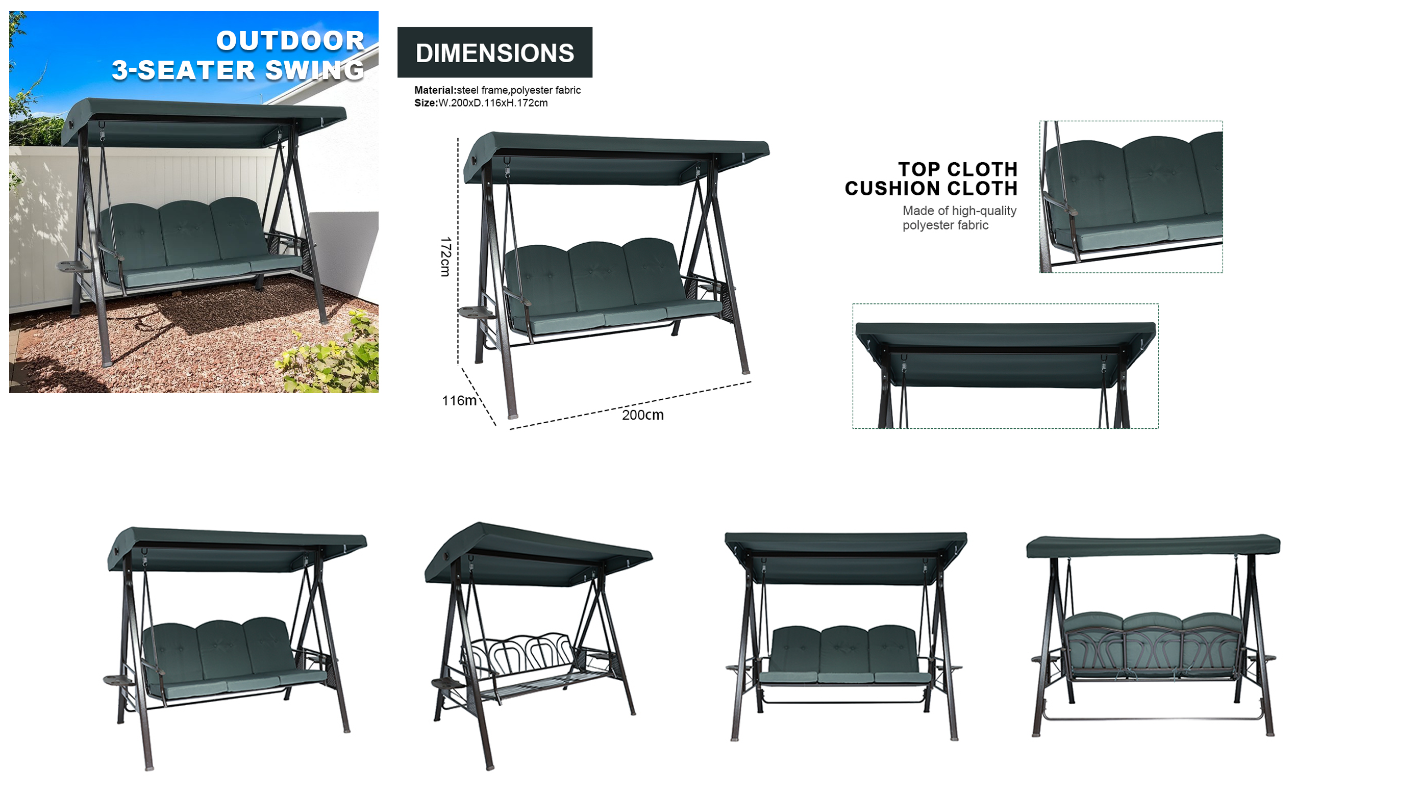 Outdoor Garden Outdoor Patio Swing Chair 3 Seater Metal Hammock Canopy Garden Swing Chair with Cushion