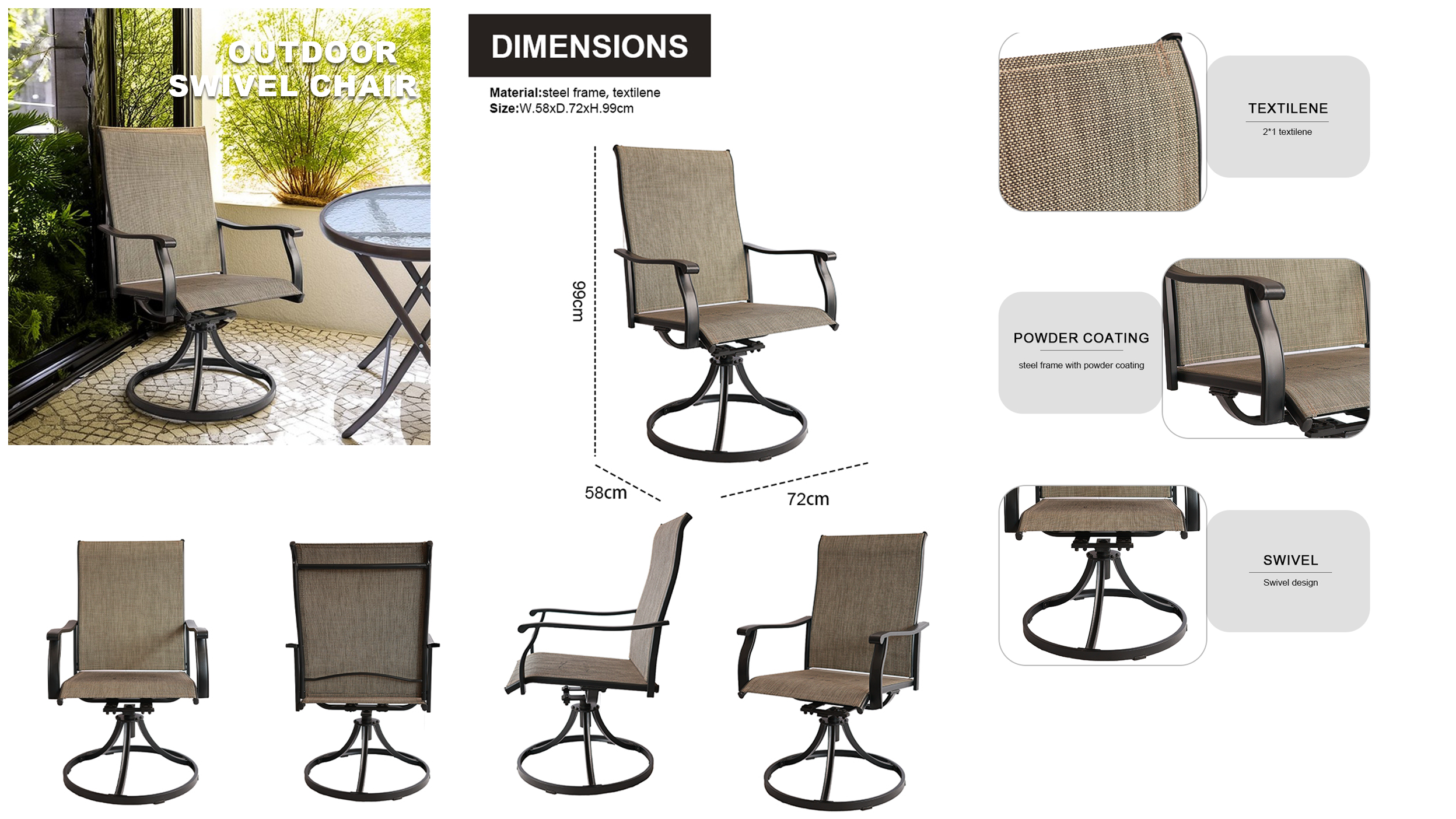 2x1 Teslin Modern Comfortable Patio Furniture Rocking Chair Garden Swivel Chair with Arm