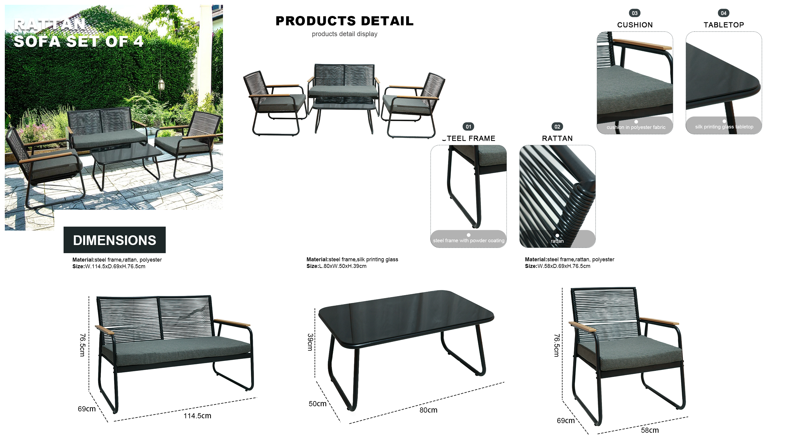 All Day Outdoor 4 Seat Garden Sectional Sofa Sofa Furniture Rattan Outdoor Terrace Session SeChair Set with Table