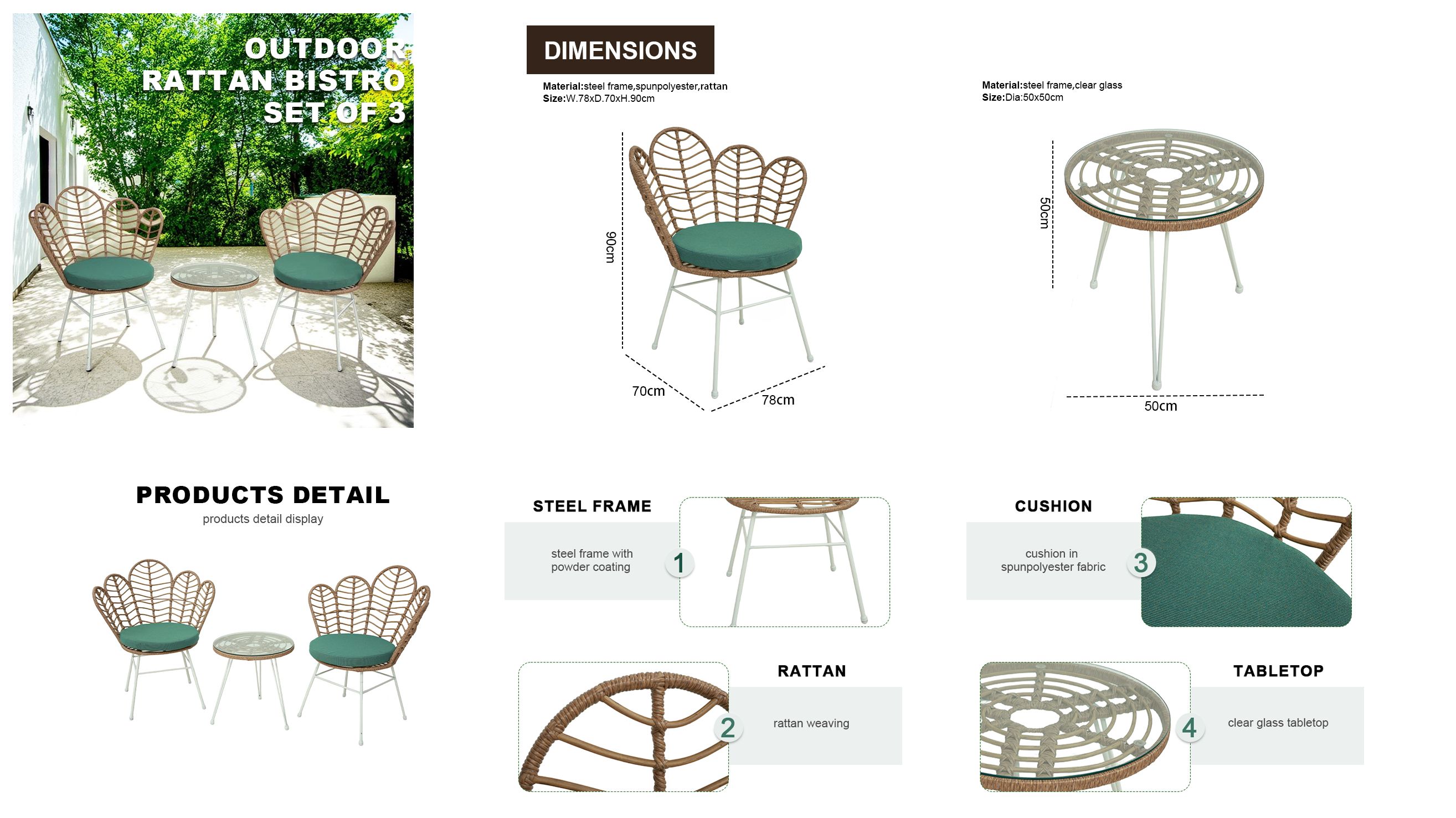 Steel Pipe Rattan Casual Three-piece Outdoor Coffee Table and Chair Set