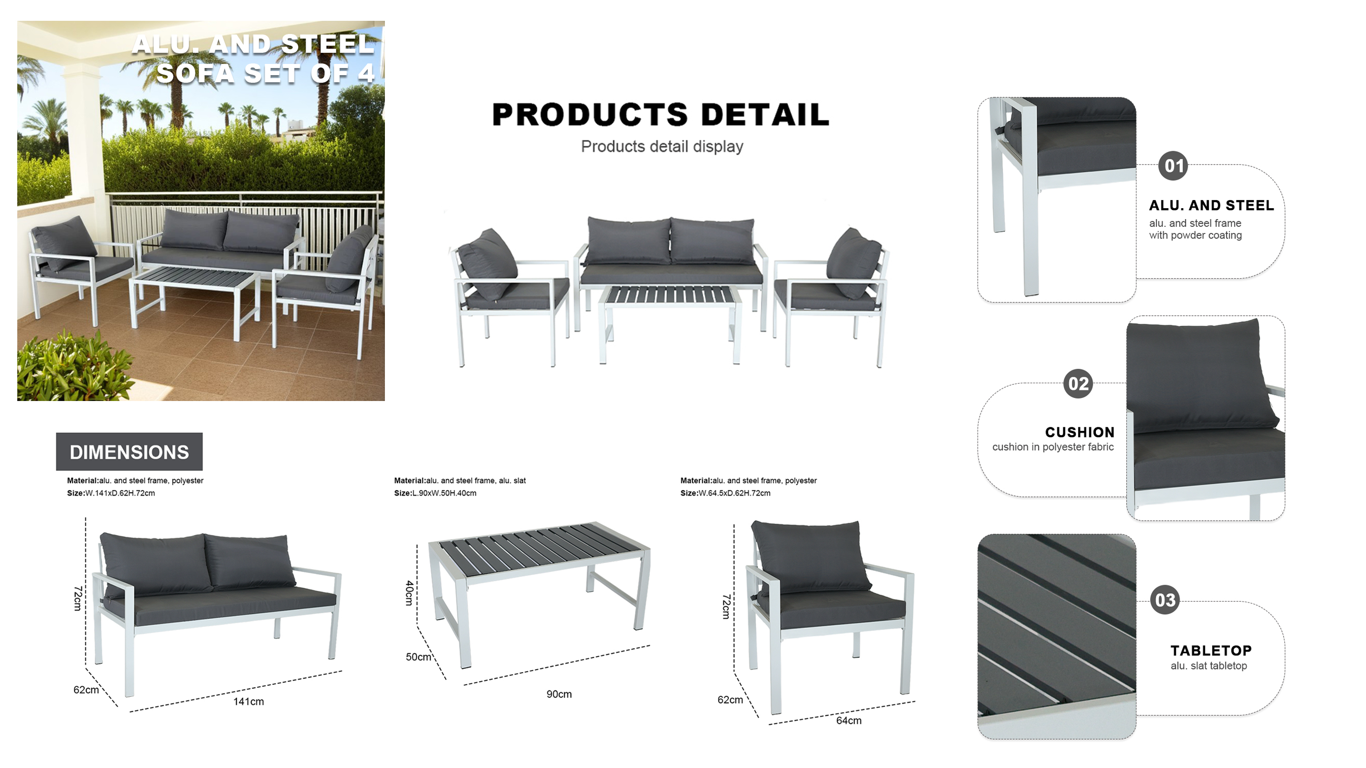 New Modern Design Garden Furniture Outdoor Sofa Outdoor Garden Furniture Luxury Sofa Set 4 Pieces