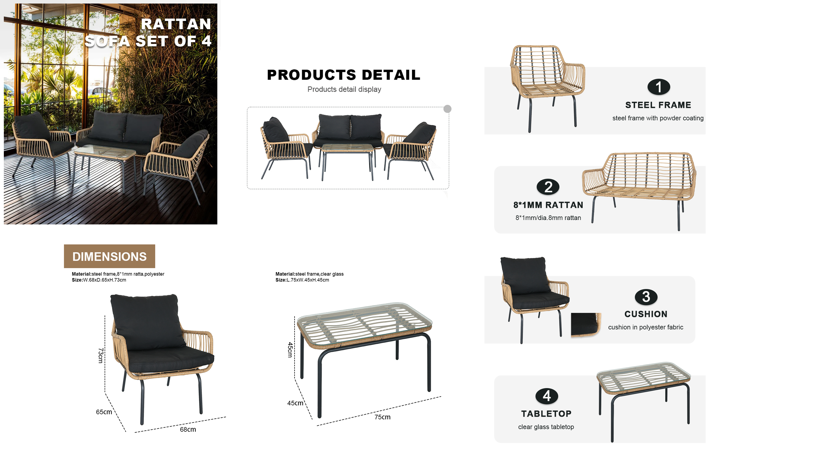 All Day Outdoor Steel 4 Seat Garden Sectional Sofa Sofa Furniture Rattan Outdoor Terrace Session Set