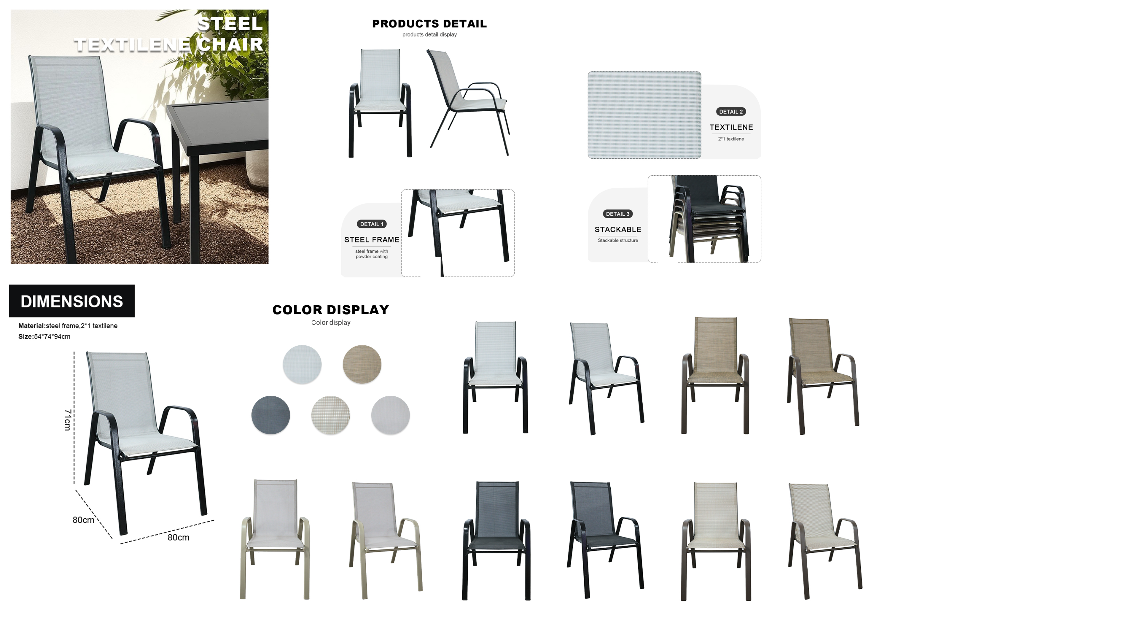 2x1 Teslin Modern Comfort Flex Metal Patio Chair with Arm Popular Outdoor Garden Chair for Park Use Teslin Design