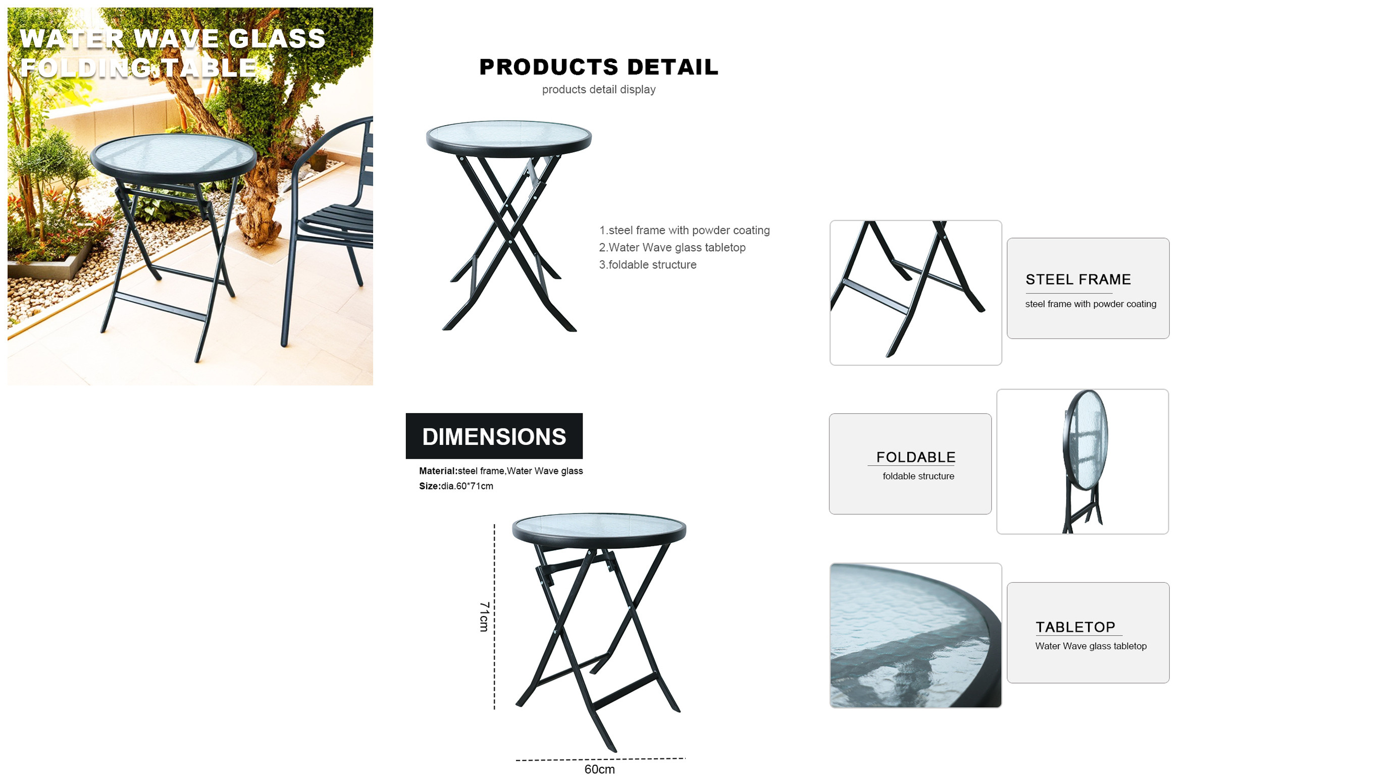 Outdoor Folding Patio Side Table Garden Round Table with Water Wave Glass Metal Steel Iron Dining Outdoor Table for Garden