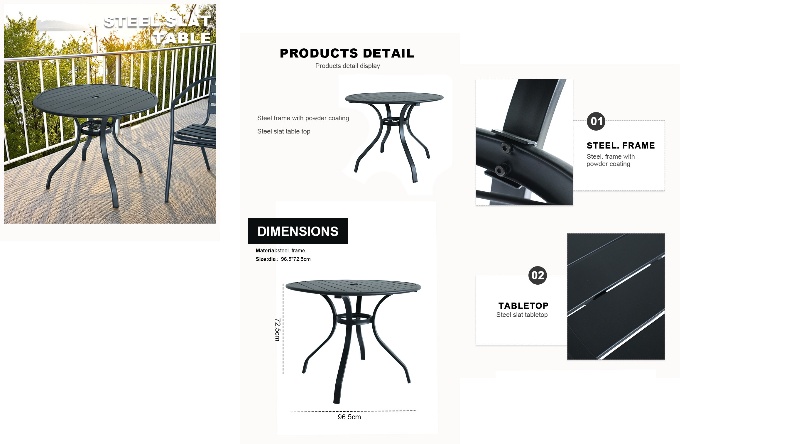 Outdoor Patio Round Table Garden Round Table with Steel Slat Tabletop Metal Steel Iron Dining Outdoor Table for Garden