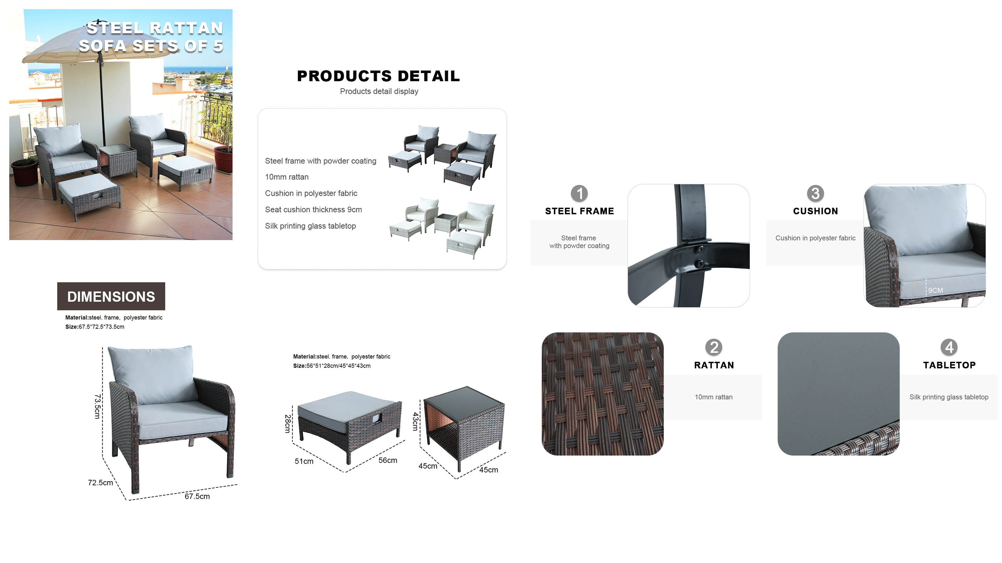 New Modern Design Garden Furniture Outdoor Sofa Outdoor Garden Furniture Luxury Rattan Sofa Set 5 Pieces