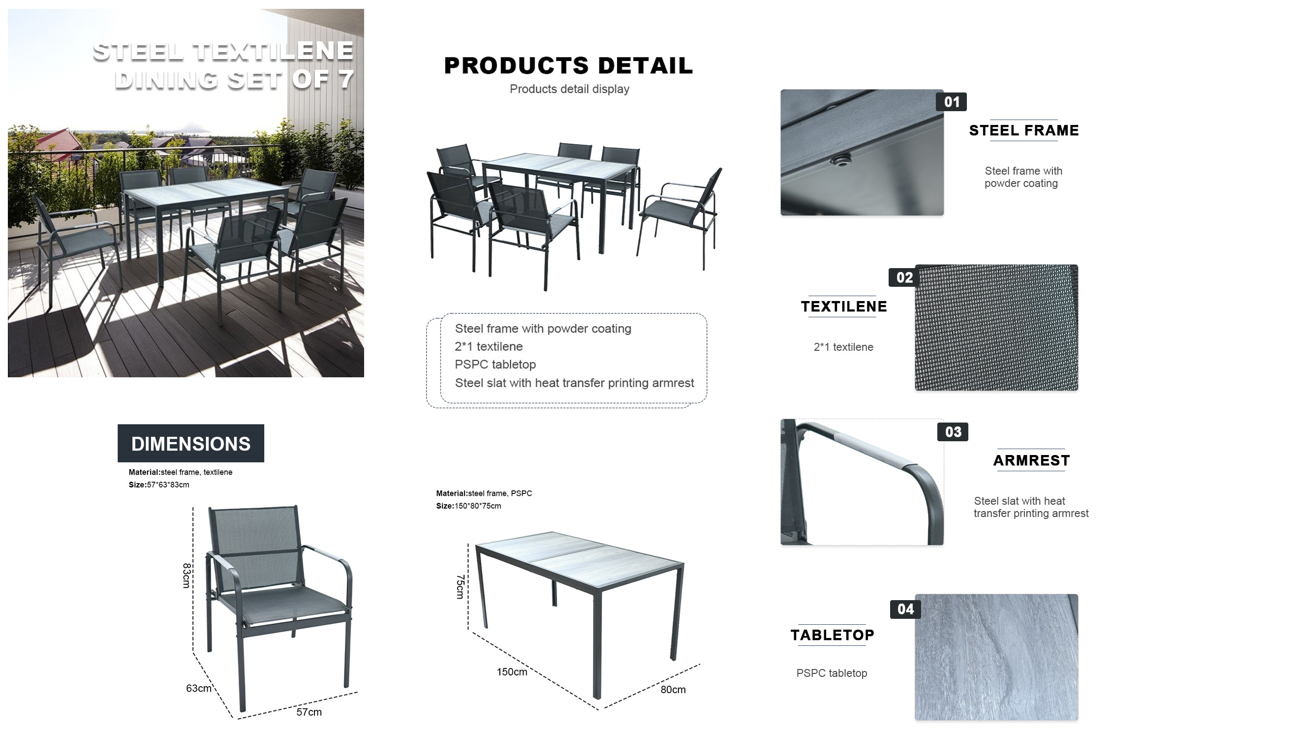 Outdoor Modern Hot Selling Good Quality Garden Furniture Dining Set of 7steel Teslin Dining Set of 7