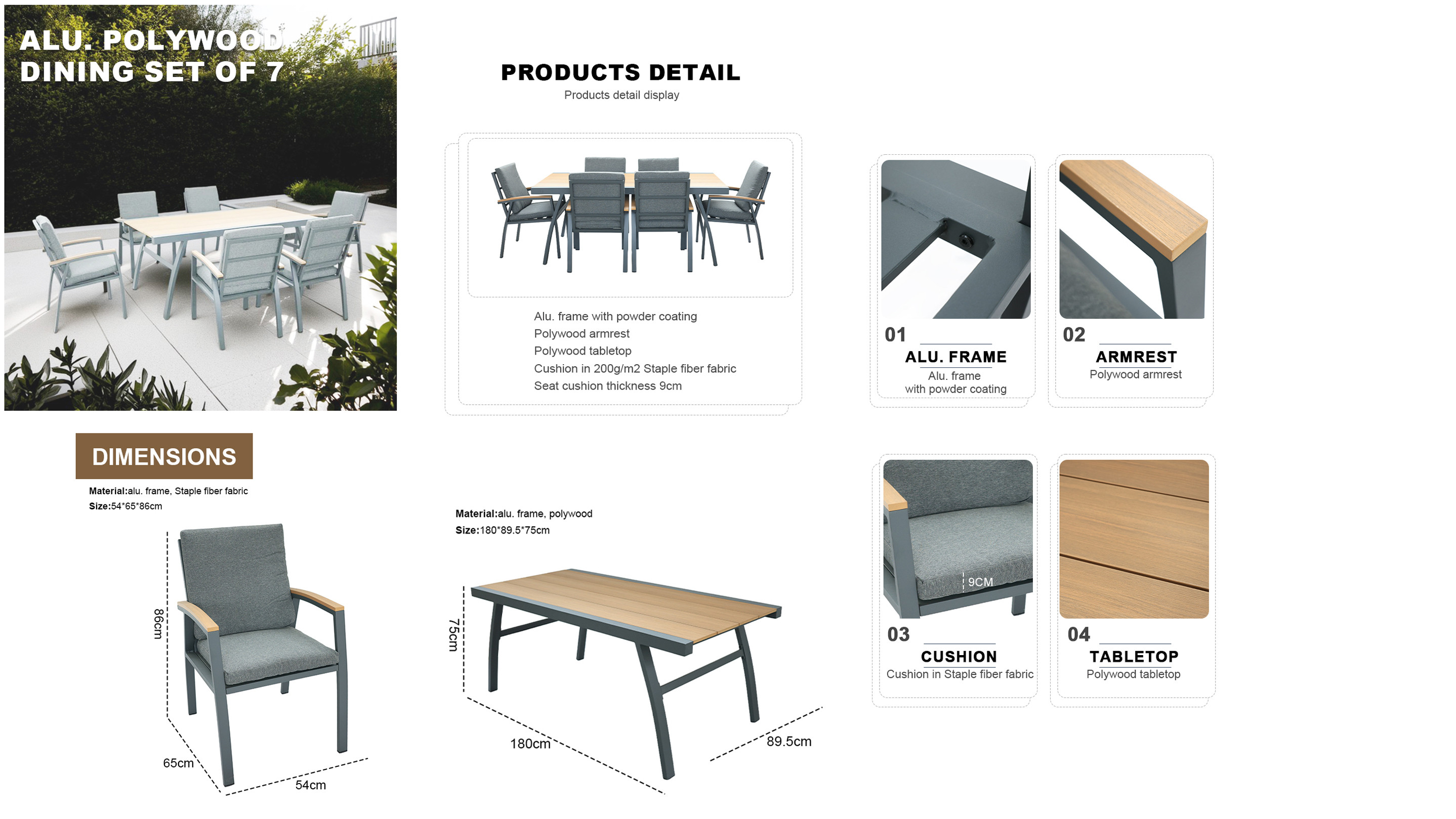 Outdoor Modern Hot Selling Good Quality Garden Furniture Dining Set of 7 Alu. Frame Dining Set of 7