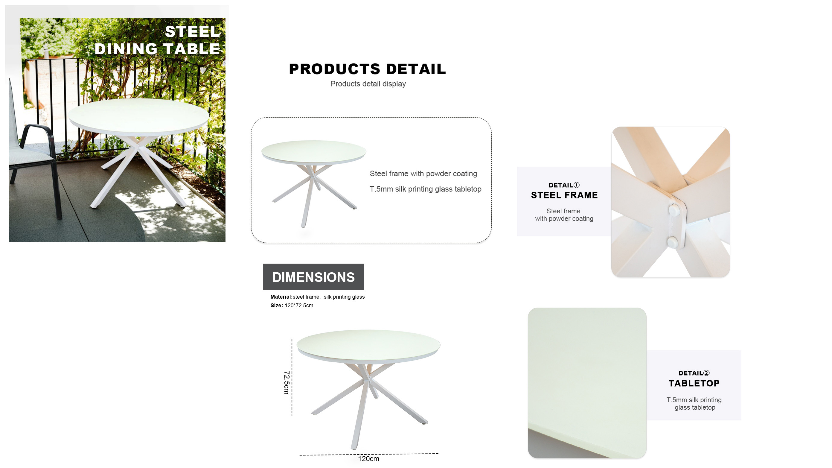 Outdoor Patio Side Table Garden Round Table with Silk Printing Glass Metal Steel Iron Dining Outdoor Table for Garden