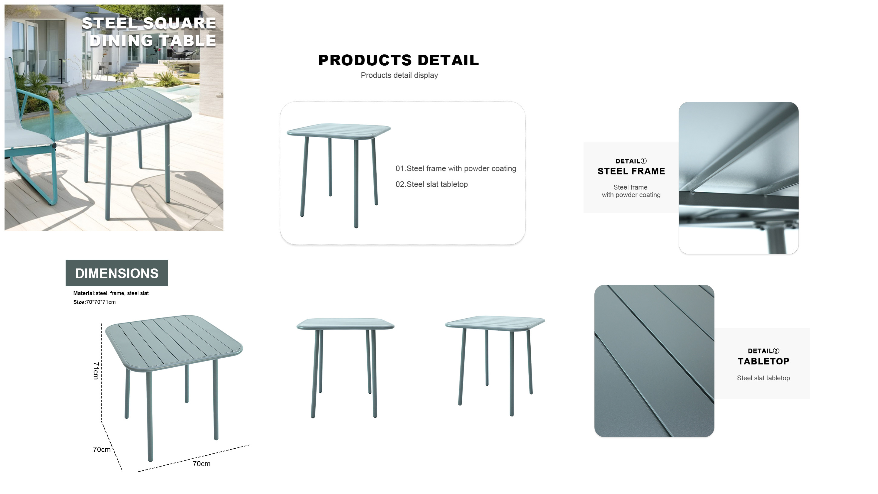 Outdoor Furniture Patio Garden Furniture Dining Table Square Backyard Dining Table for Deck Backyard Lawn Garden