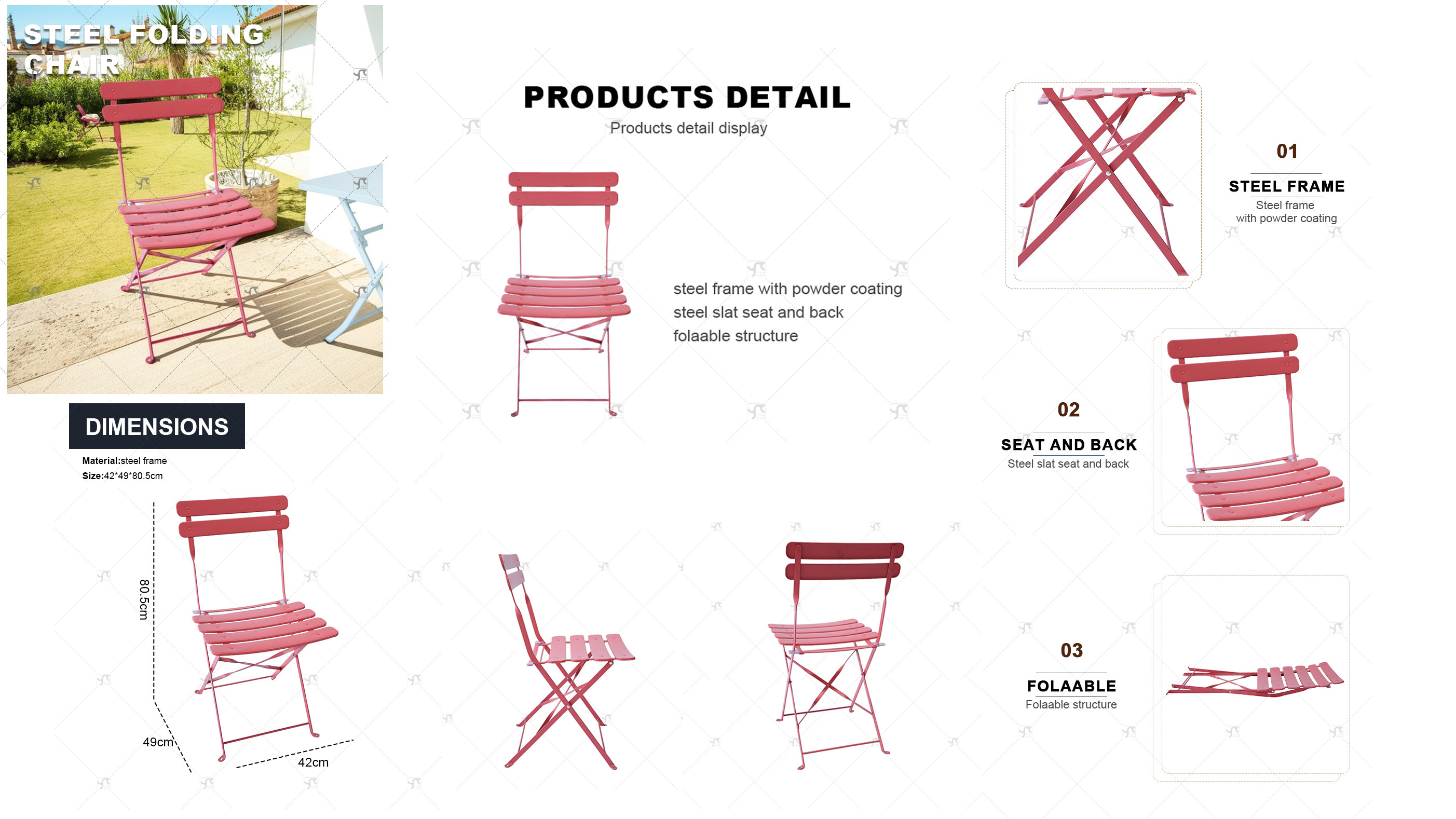 Outdoor Patio Metal Folding Steel Chair Furniture Metal Chair Color, Patio Steel Bistro Chair Garden Bistro Folding square Chair
