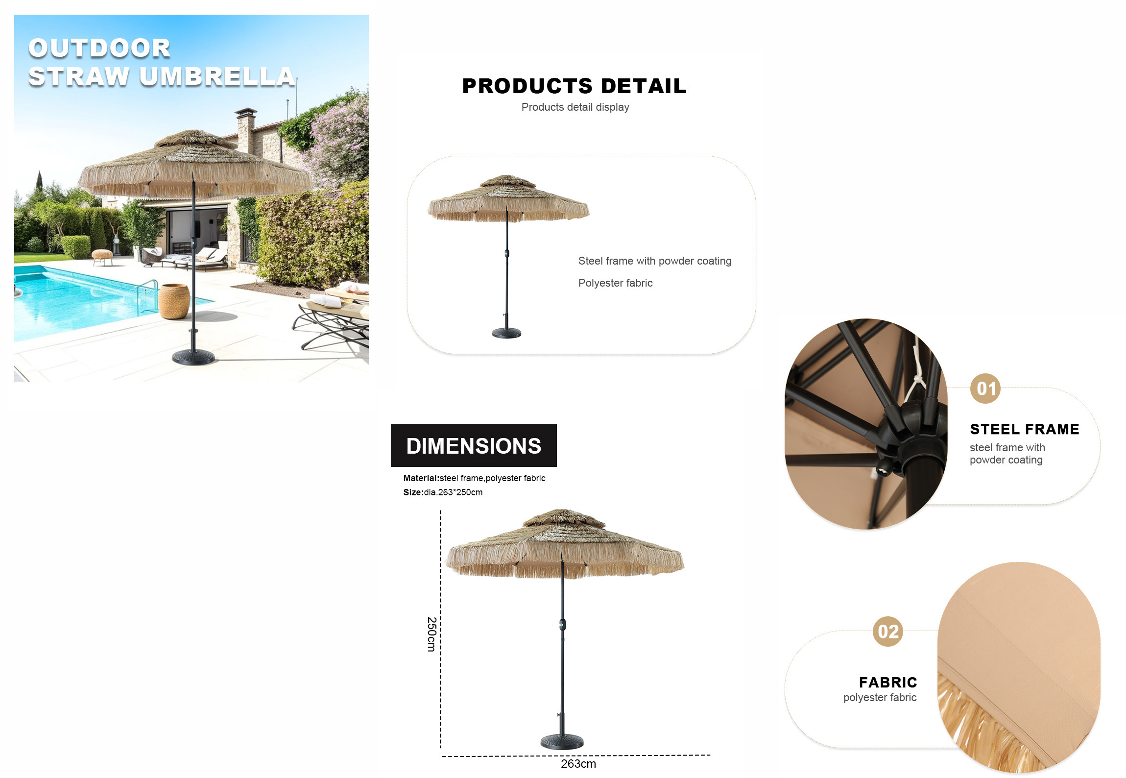 Garden Umbrella 2.5 Meter Two Layer Synthetic Thatch Roof Outdoor with Thatch Grass Beach Thatched Umbrella