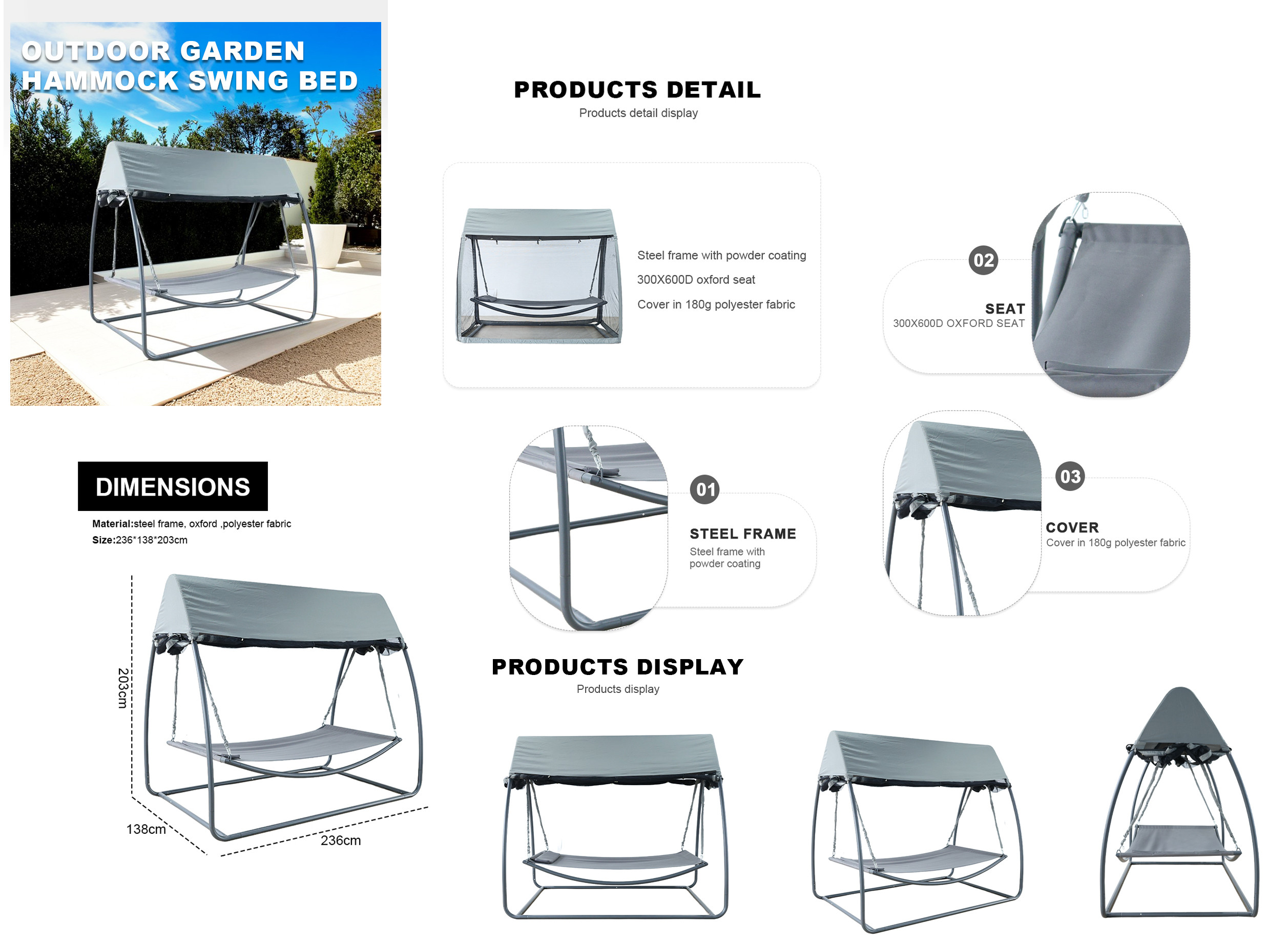 Hanging Swing Bed Outdoor Day Bed Hammock Hanging Stand Mosquito Net Cover Double Bed Patio Backyard for Outdoor Furniture Use