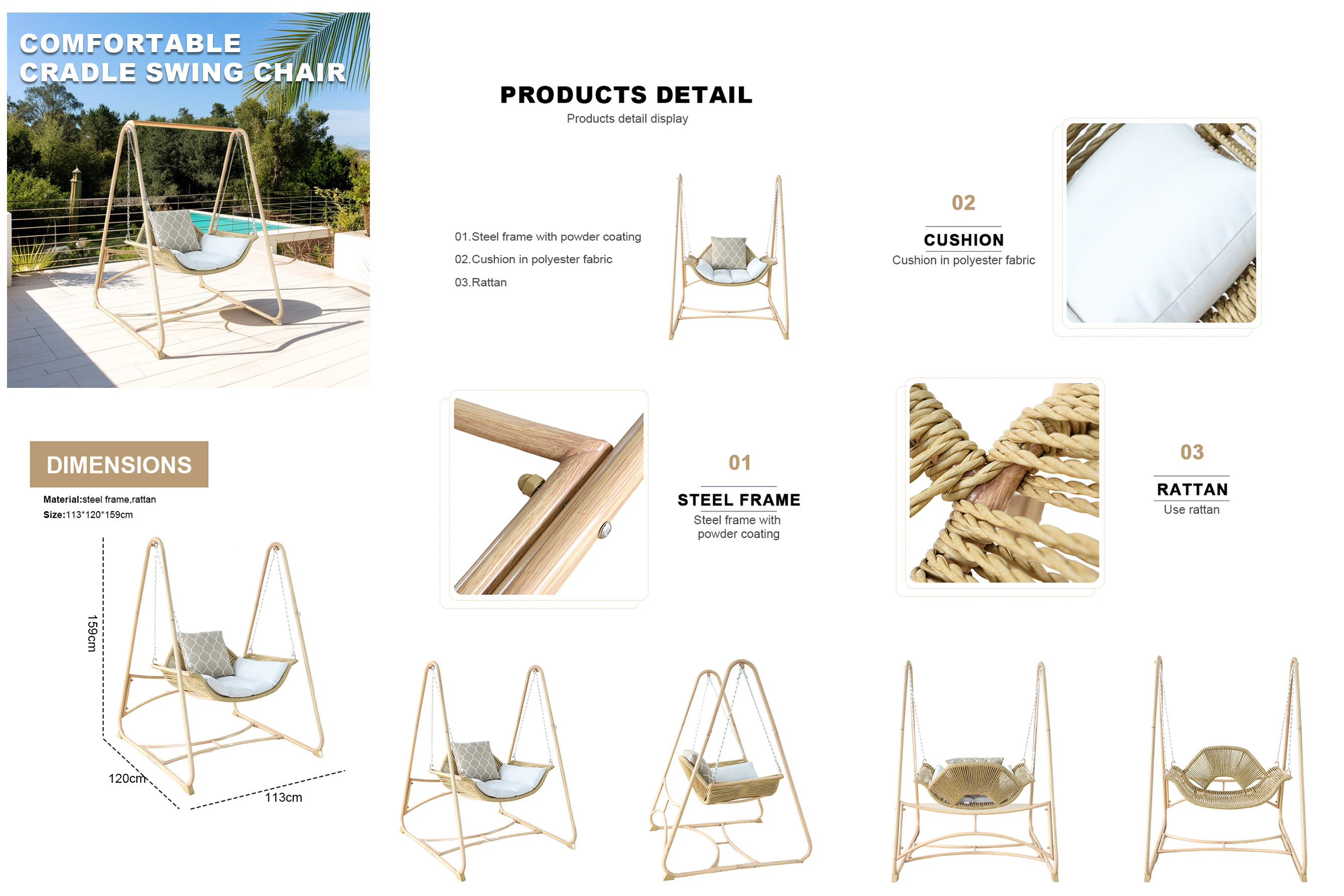 Nordic Double Swing Hanging Chair Home Lazy Indoor Cradle Chair with Rattan Metal Patio Garden Hanging Rocking Chair for Balcony