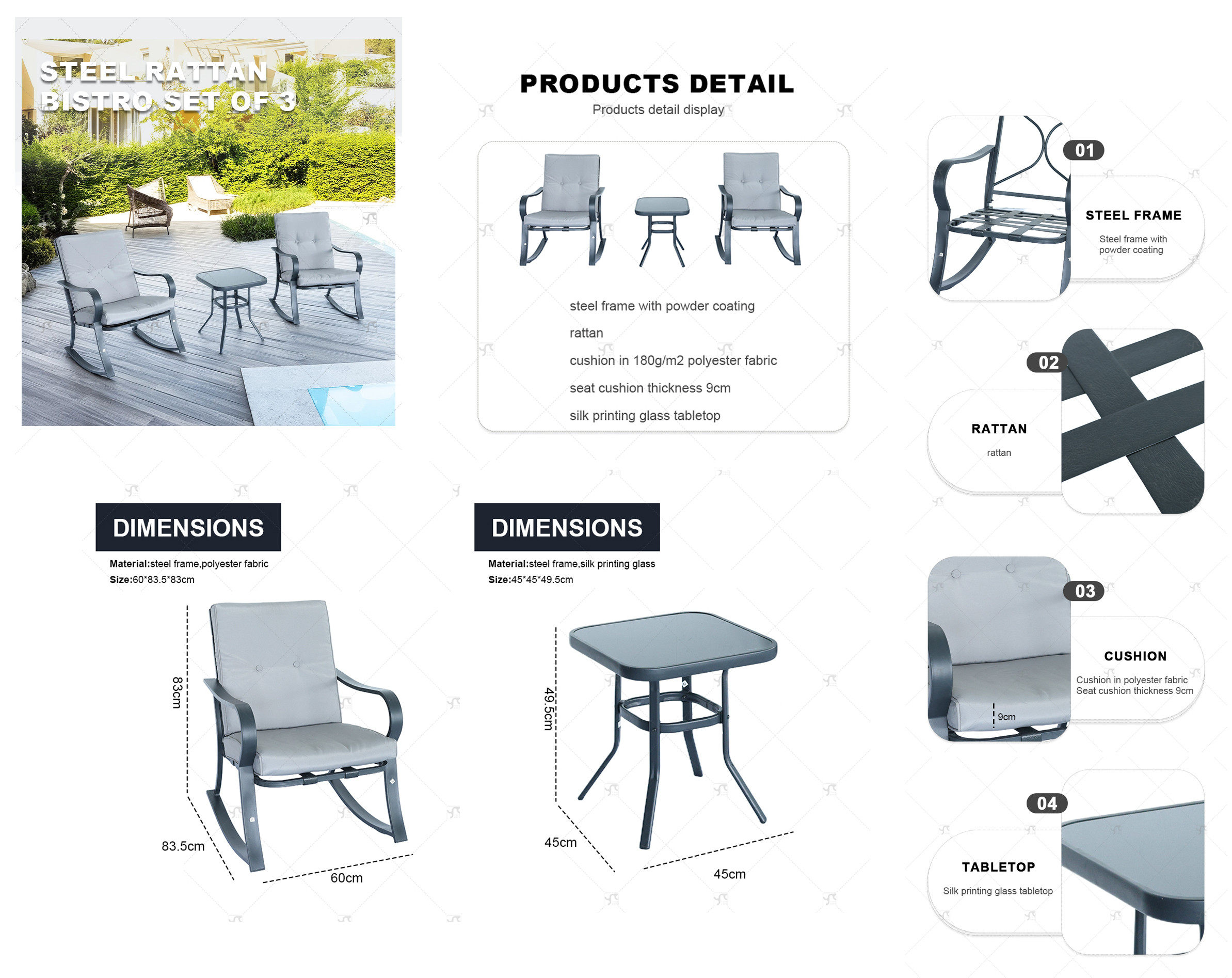 3Piece Outdoor Patio Furniture Set Garden Courtyard Leisure Table and Rocking Chair Set with Thickened Cushion