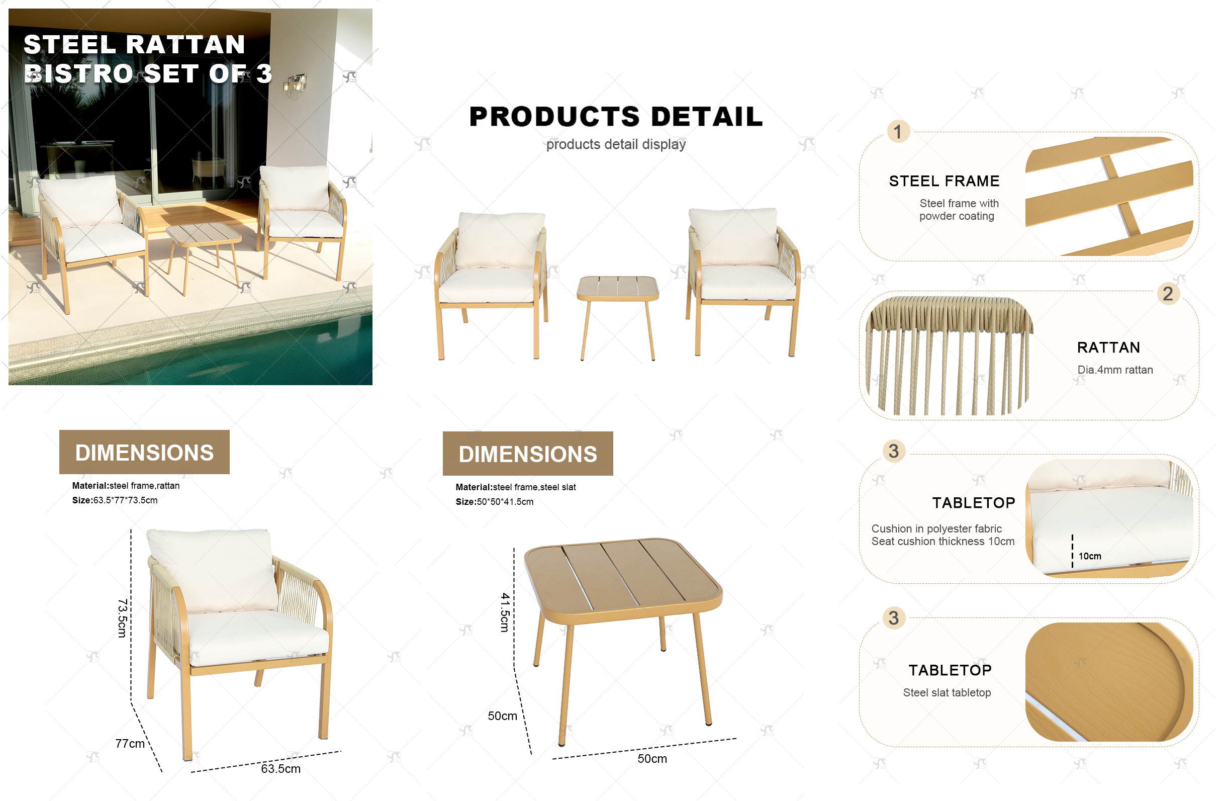 Modern steel Rattan Rope Woven Hotel Resort Patio Dining Chairs Outdoor Garden Furniture table and chair Set of 3