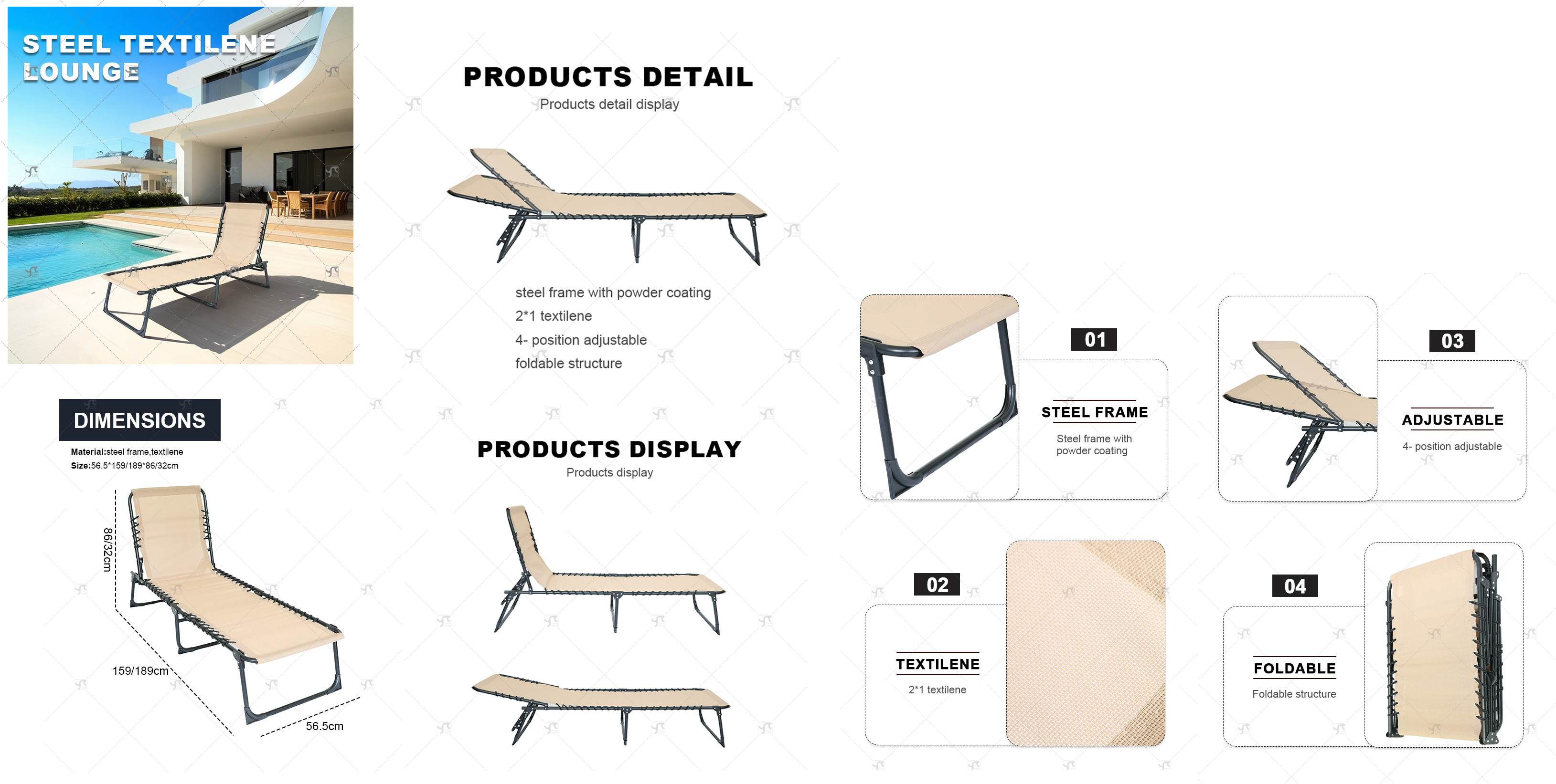 Modern Adjustable Portable Camping Furniture Qutdoor Garden and Beach bed with Foldable Lounge Cot Pillow for Beach Garden Use