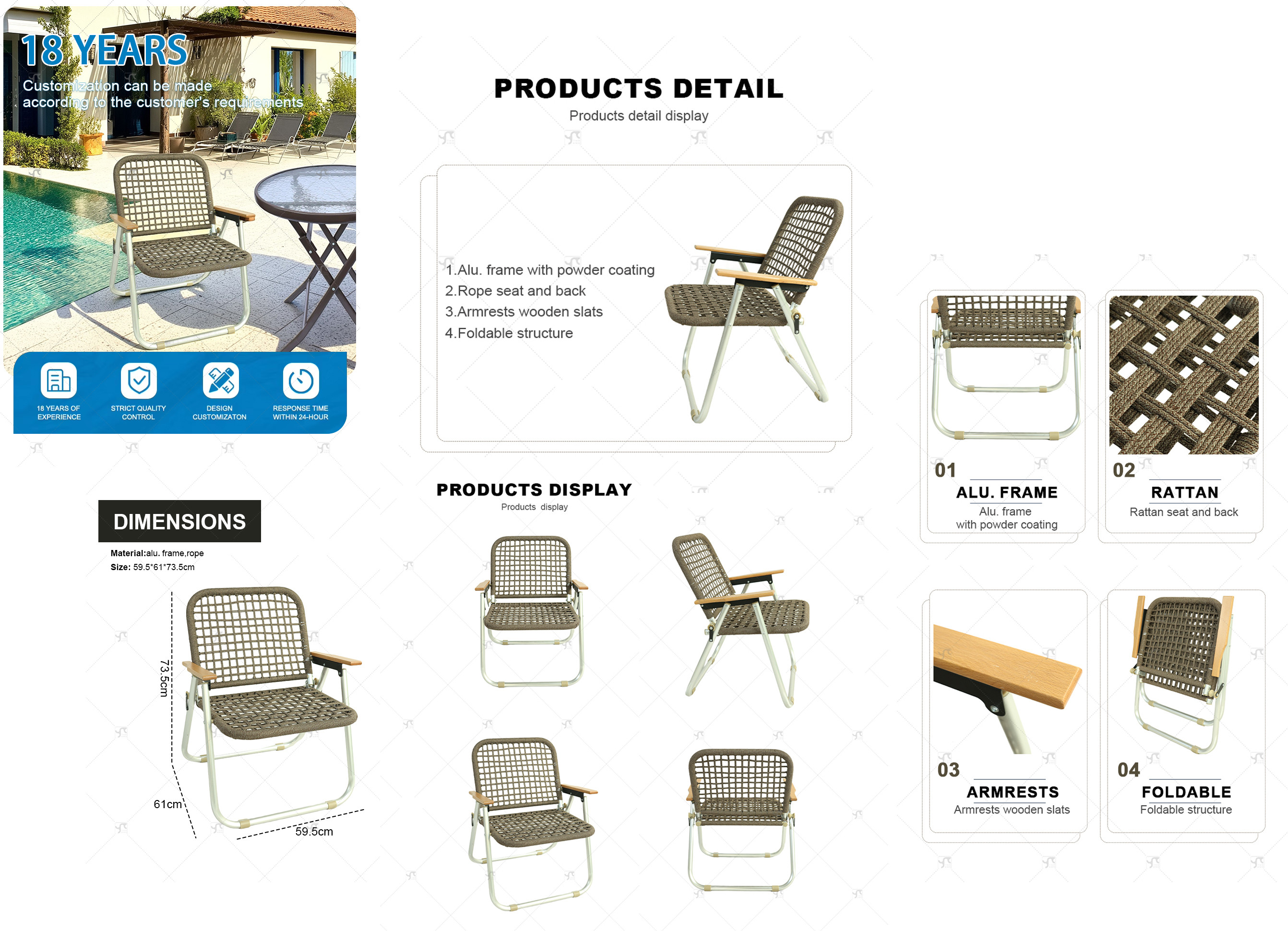 Outdoor Rattan Folding square Chair Patio Outdoor Aluminum Rattan Chair Balcony Portable Single Camping Coffee Kermit Chair