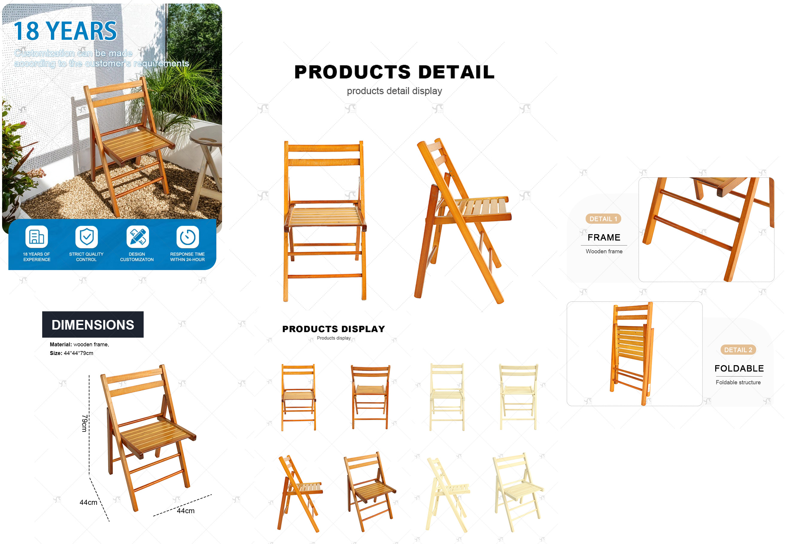 Durable Wooden Folding Chair Portable Reinforced Frame Indoor/Outdoor Camping Chair Modern Design for Home Office Living Room