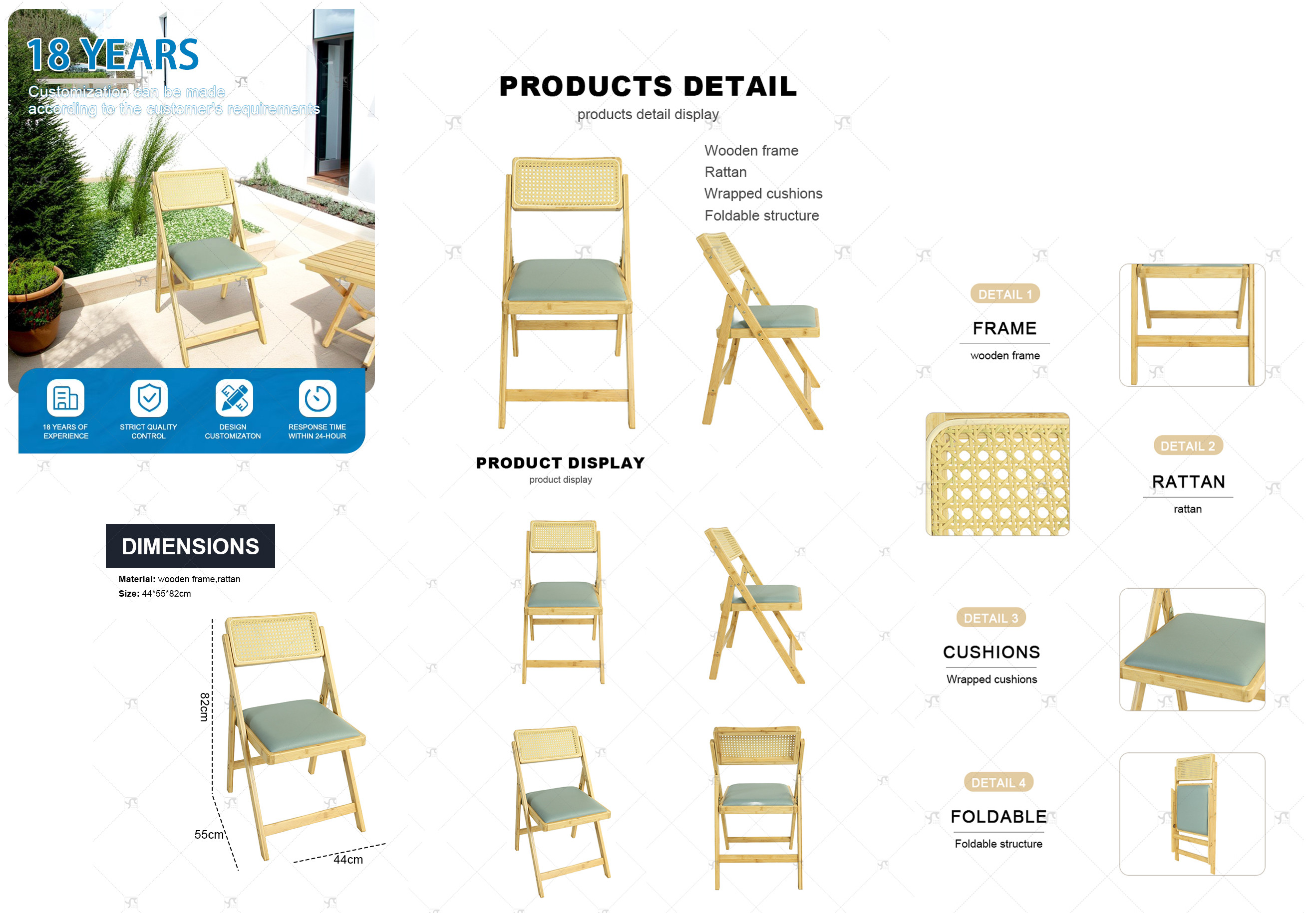Indoor/Outdoor Rattan Folding Chair with Cotton Cushion Seat and Backrest Style Seating for Retro Camp Garden Outdoor for Events