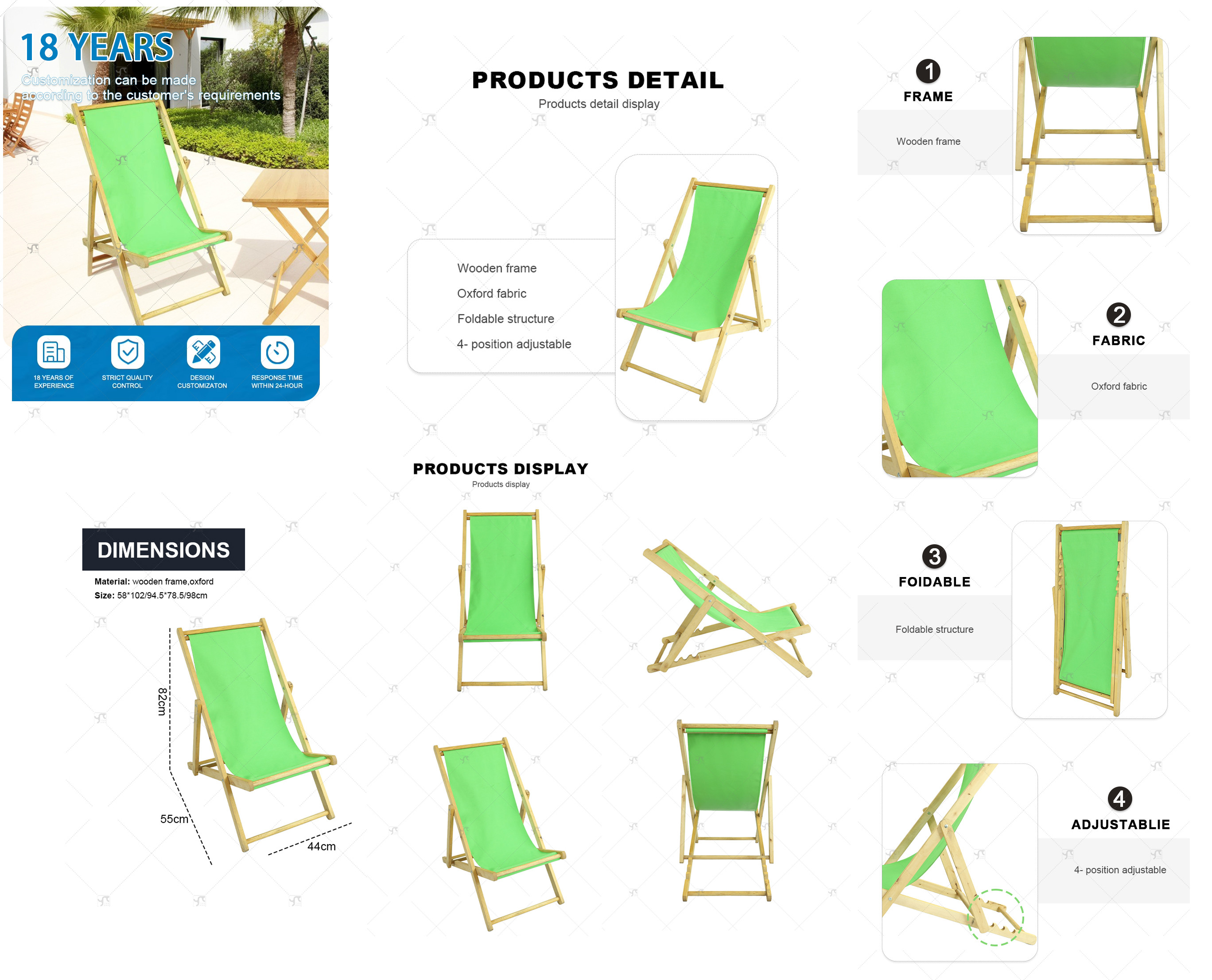 Outdoor Furniture Wooden Outdoor Lounge Chair Foldable Durable Oxford Fabric Light Weight for Balcony Garden Park or Beach