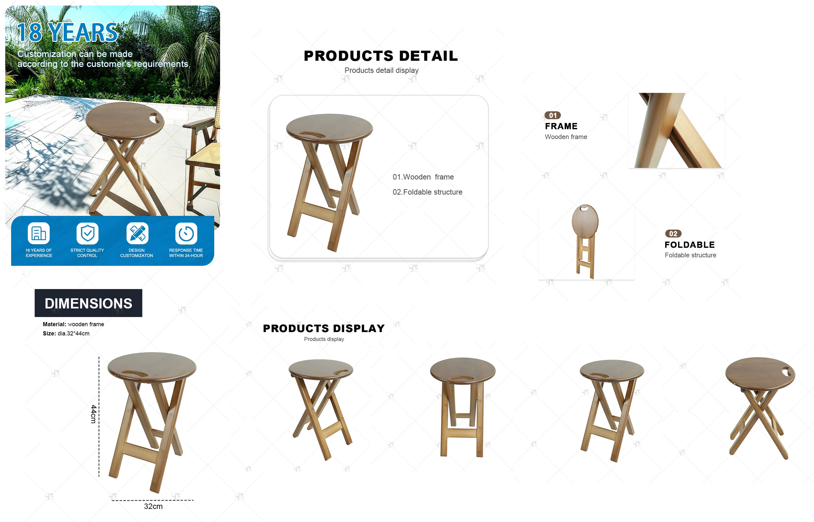 Modern Minimalist Solid Wood Round Foldable Chair Wooden Folding Bar Stool With Handle for Kitchen Vanity Church and Outdoor Use