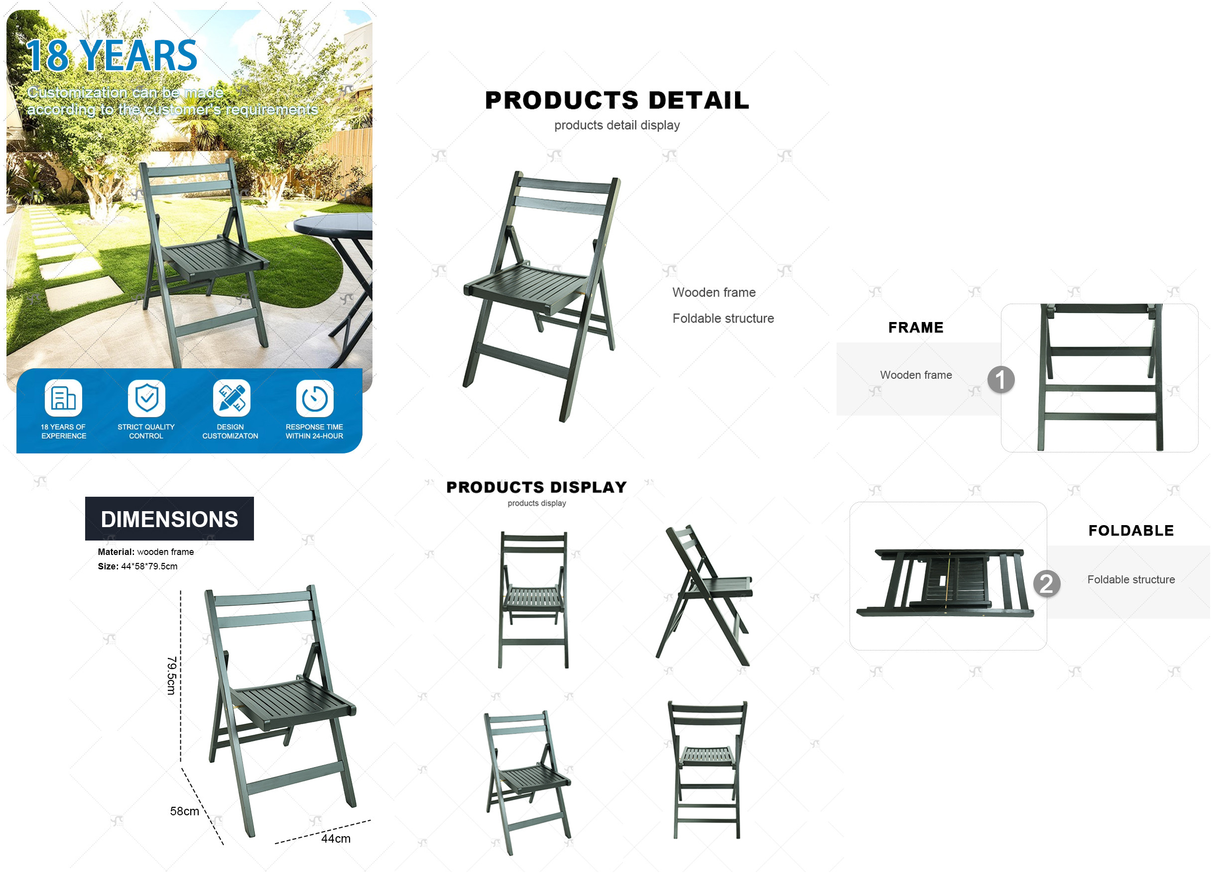 Hot-selling High-quality Outdoor Black Wooden Folding Chair, Suitable for Garden, Camping Picnics, Restaurant Party Activities