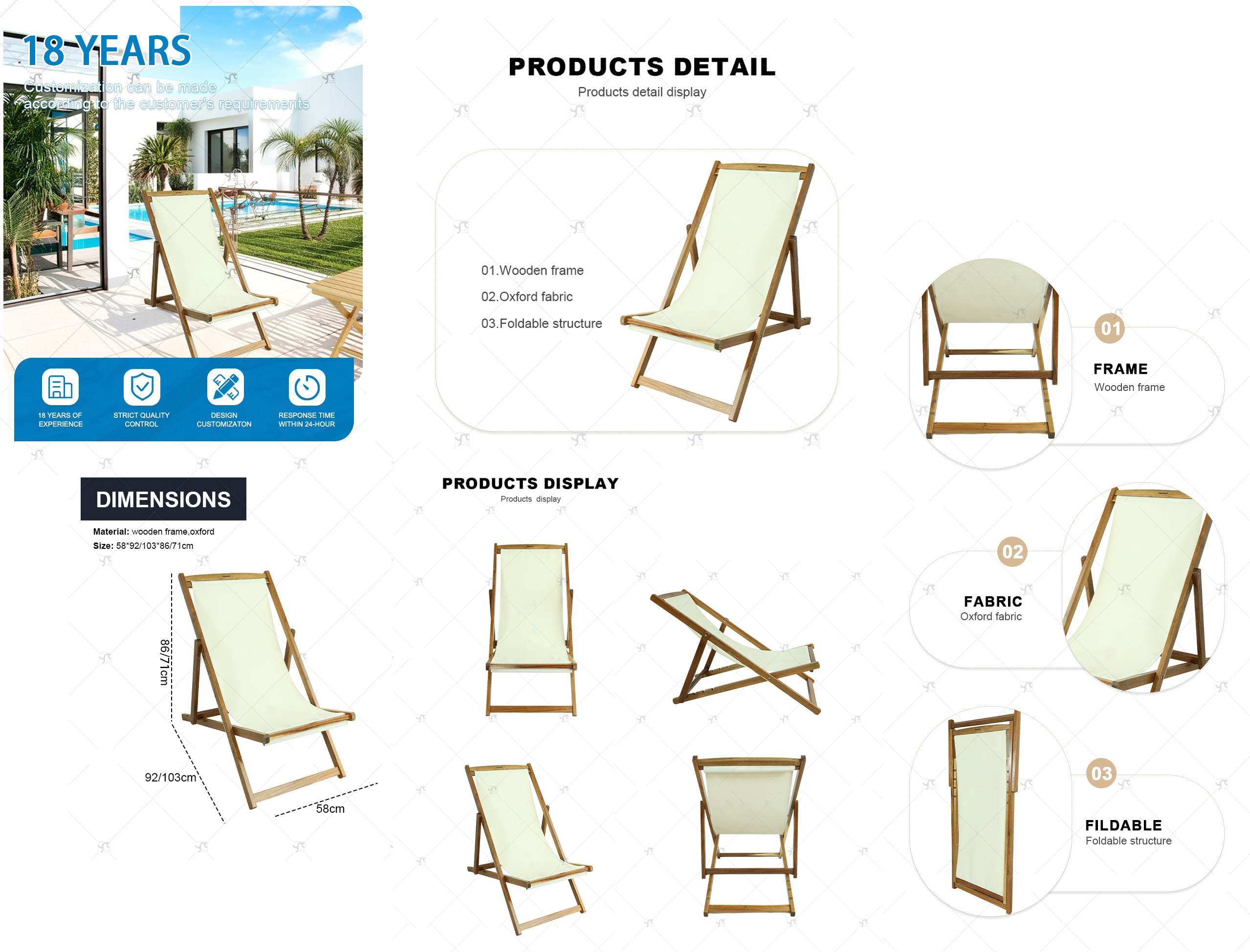 Outdoor Patio wooden Folding Adjustable Chair