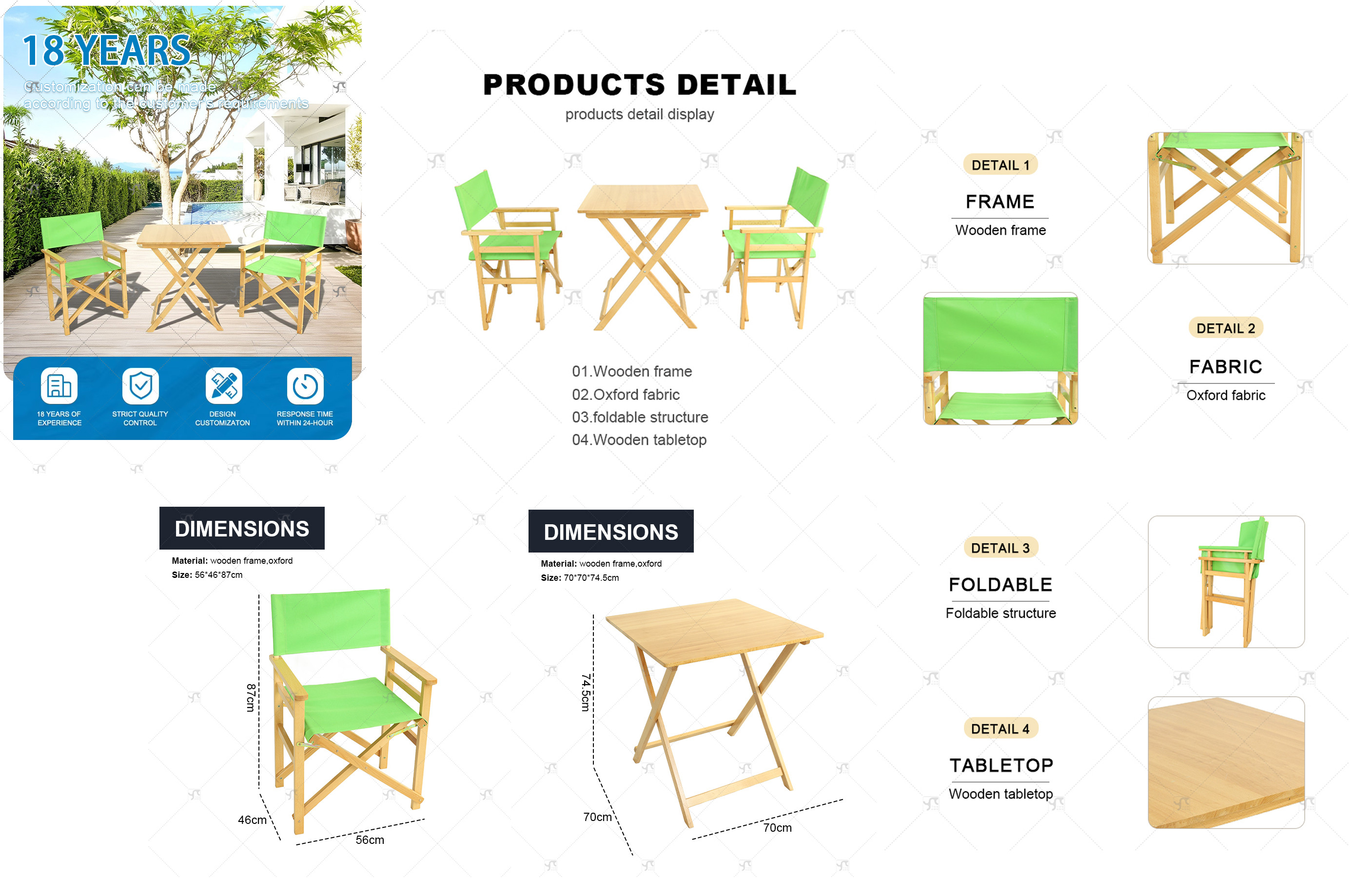 Modern Minimalist Solid Wood Green Home Garden Dining Furniture Set Outdoor Folding Wooden Dining Table and Director Chair
