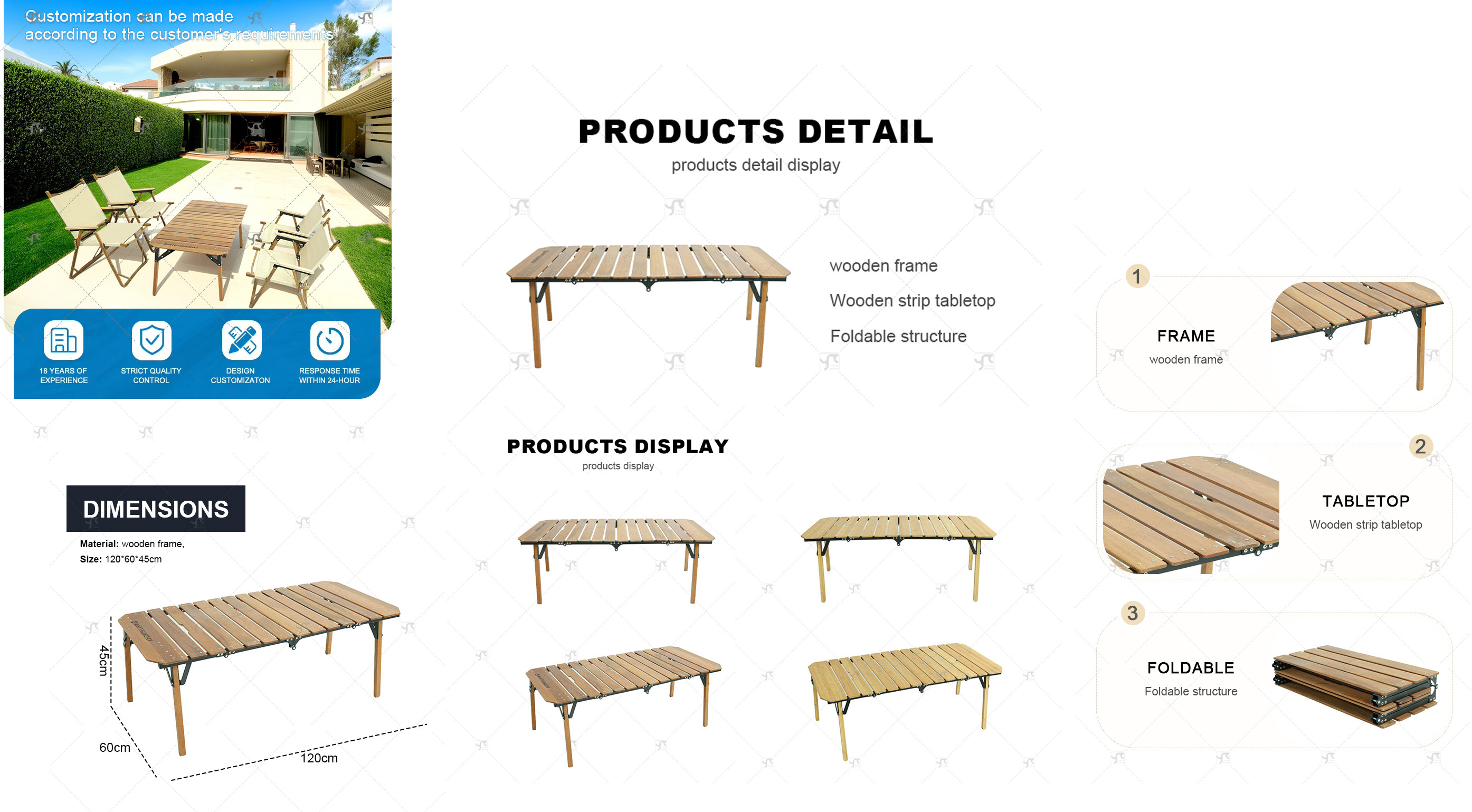 Portable Metal Folding Camping Table Lightweight Wood Panel Outdoor Furniture for Kitchen Beach Living Room Bedroom Gym Use