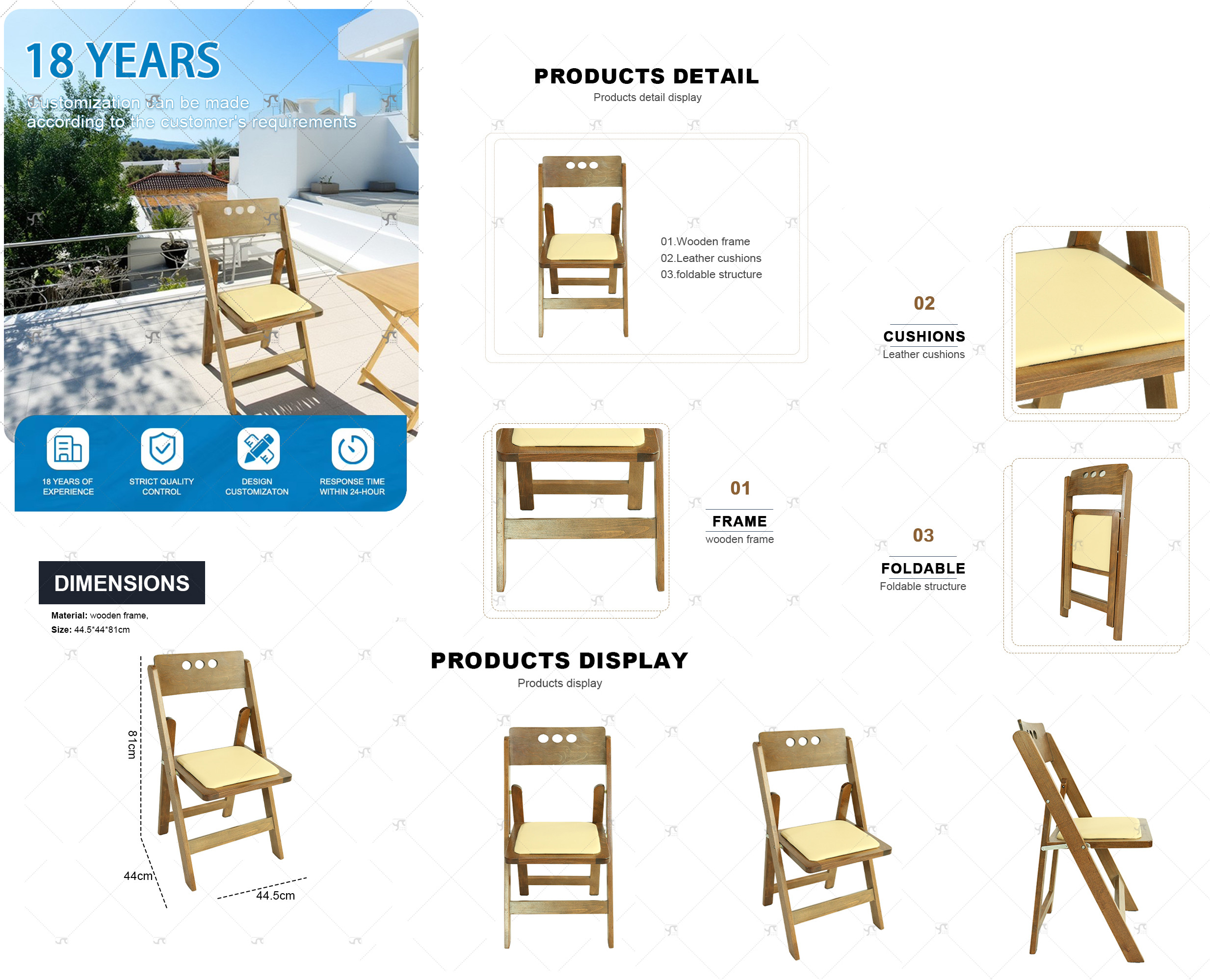 Outdoor Wooden Portable Wooden Activity Folding Chair WithLeather Pad Folding Chair for Hotels Parties Outdoor Parks Cottages