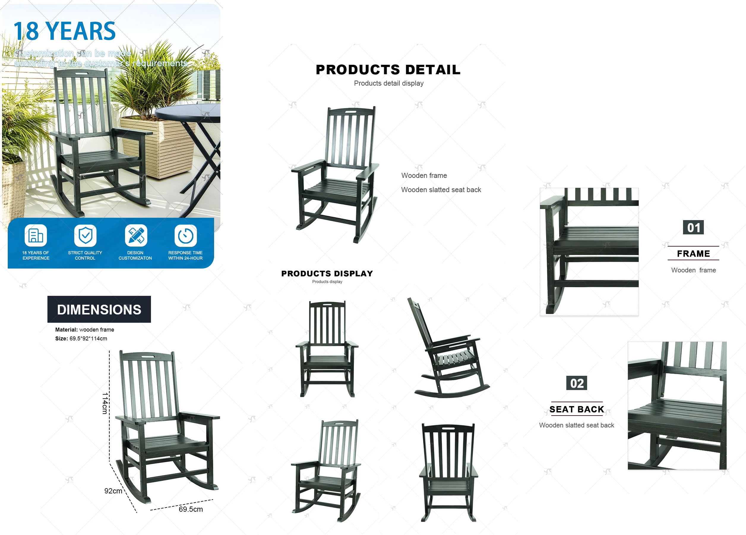 Outdoor Black Garden Leisure Rocking Chair Pool Bench Interior Deck Patio Beach Rocking Solid Wood Patio Villa Courtyard Chair