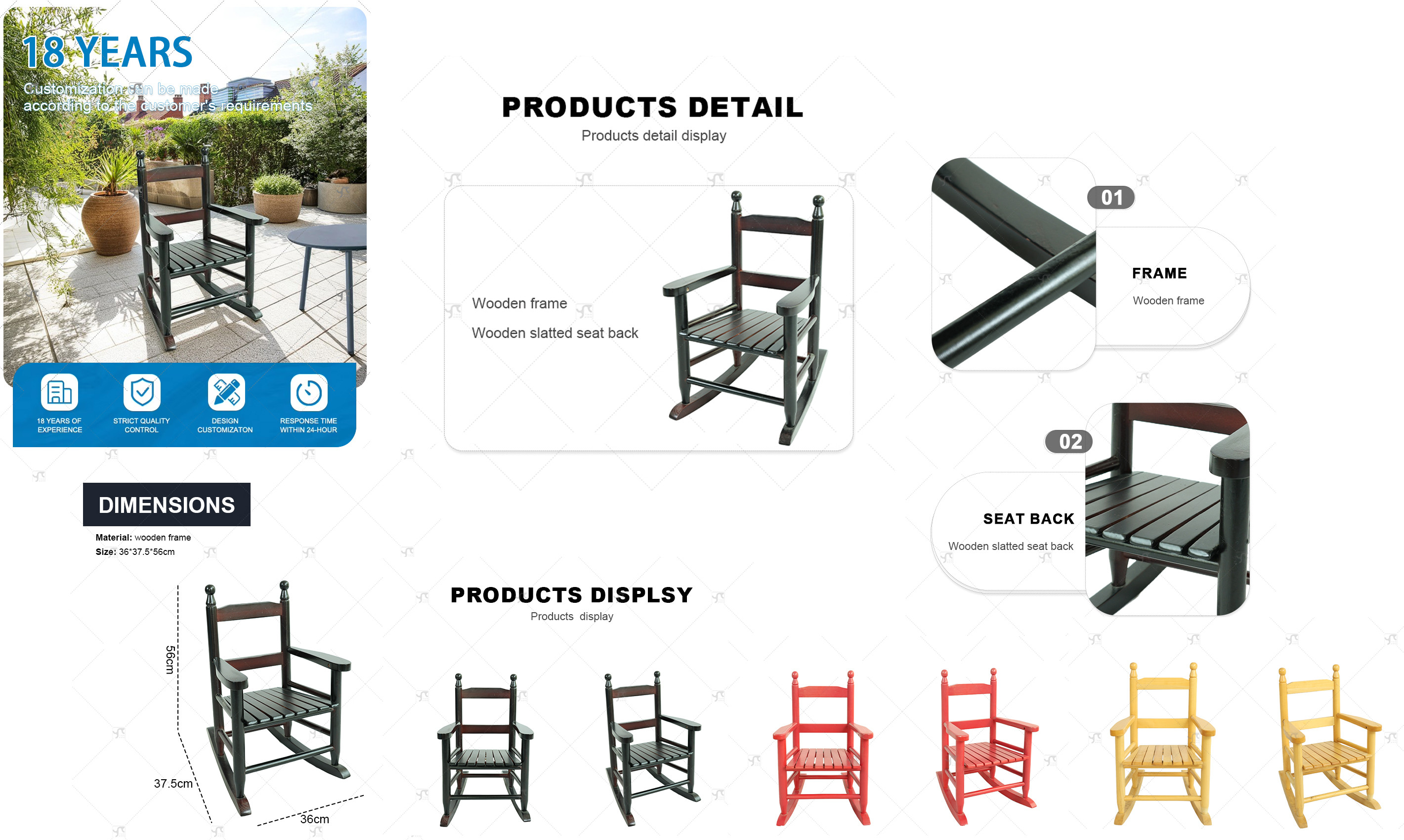 Modern Kids' Rustic Wooden Leisure Rocking Chair Three Color Options Solid Wood Patio Garden Porch Rocker Popular Wooden Design
