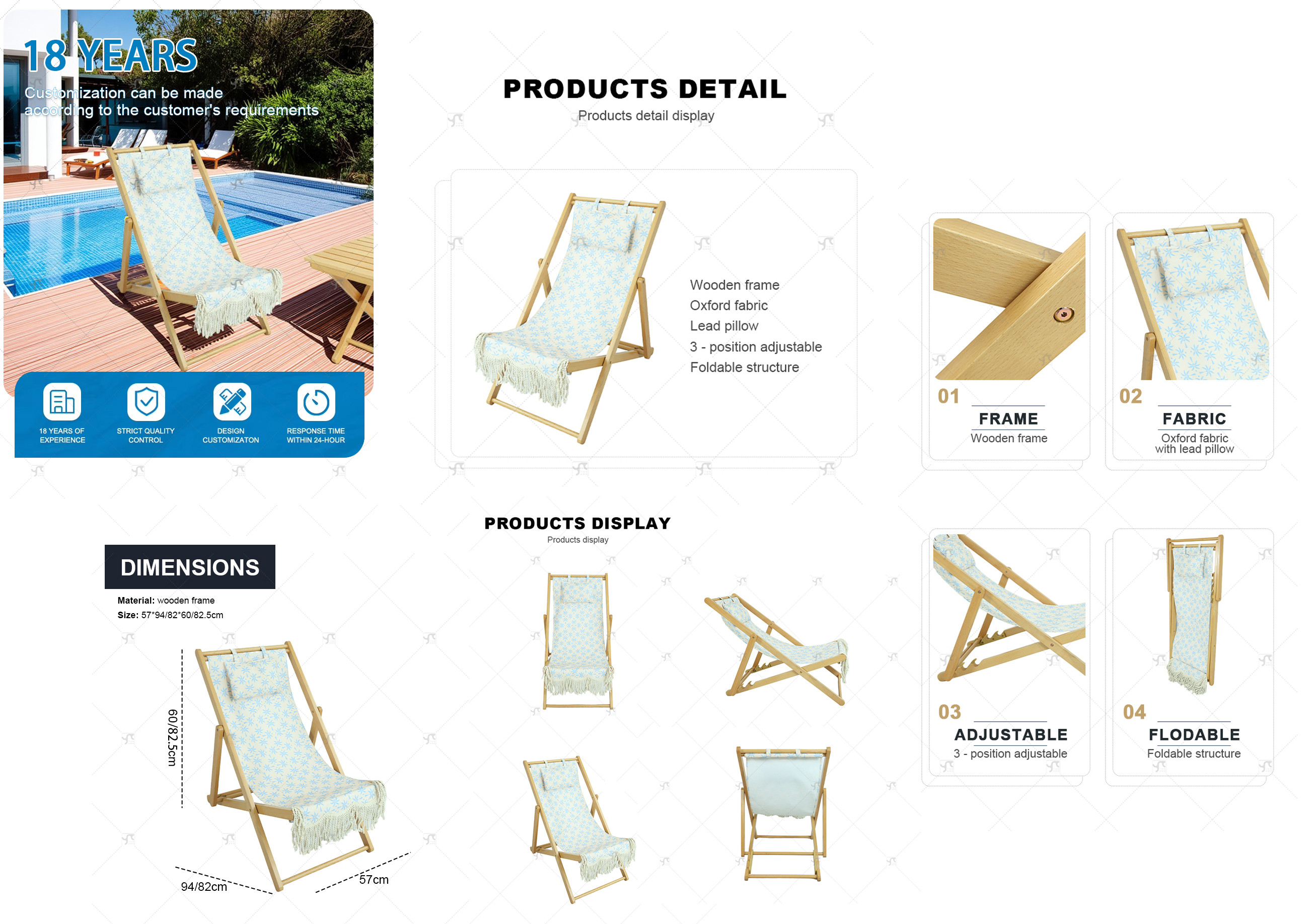 High Quality Wooden Folding with Pillow Chair Luxury Outdoor Garden Furniture Modern Portable Reclining for Beach Garden Use