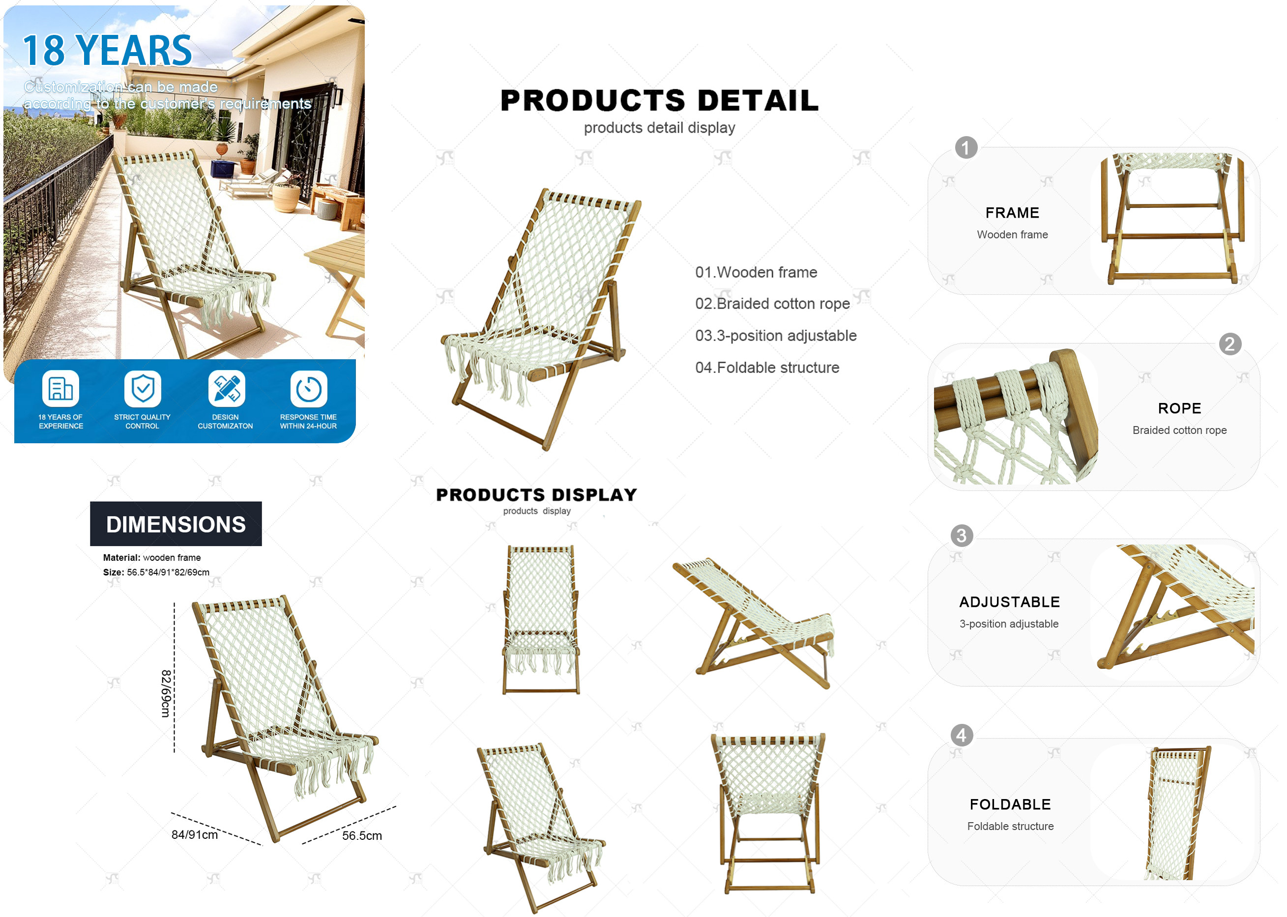 wooden 3- Position Adjustable chair
