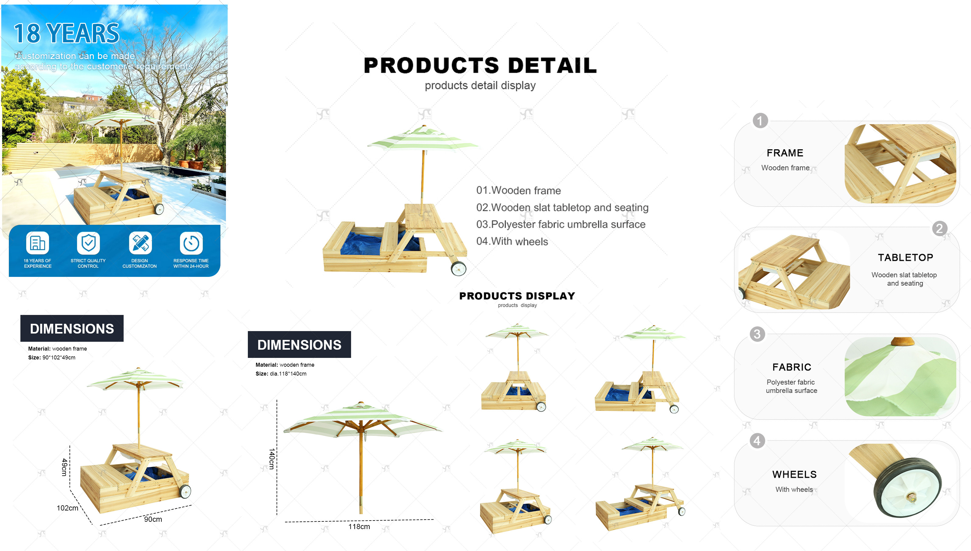 Outdoor Wooden Sand Car Shape Box for Kids Height Adjustable Sandbox with Canopy Kids' Backyard Play Pit with Cover With Wheels