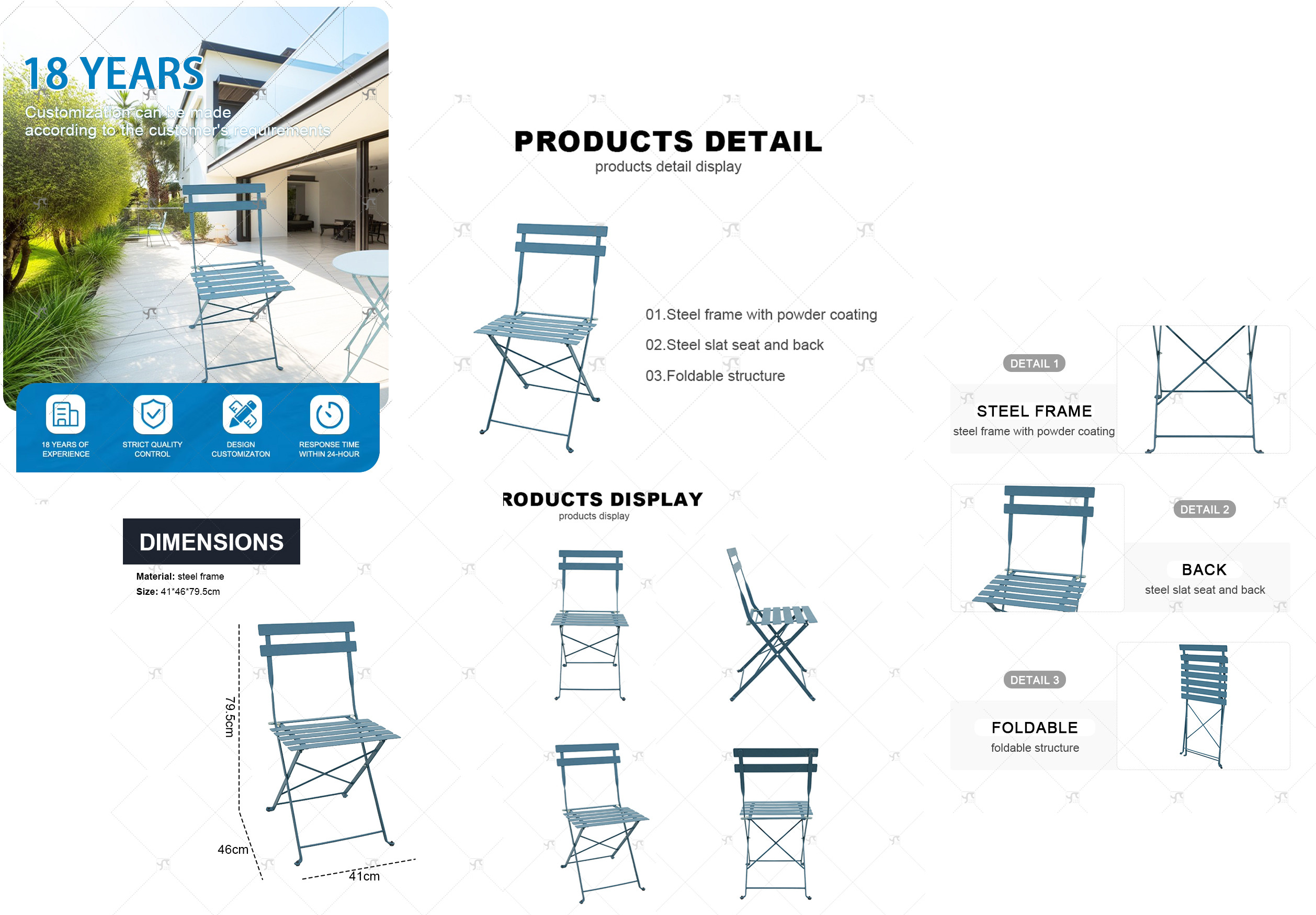 Outdoor Durable Steel Folding Bistro Chair for Dining Outdoor Living Room or Park Use for Wedding Events Party Banquets Hotels