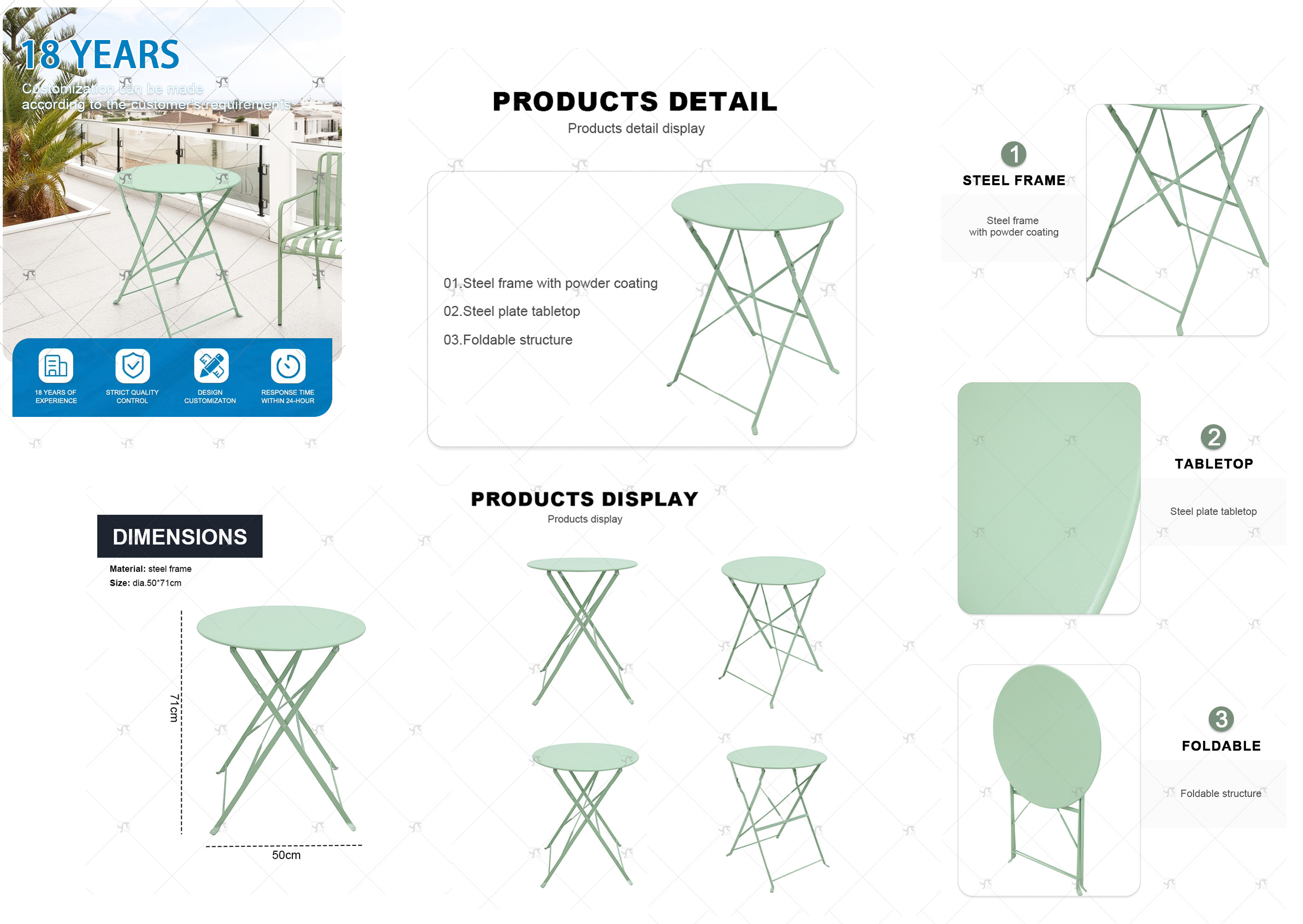 Modern Outdoor Garden Restaurant Coffee Table Garden Metal Furniture Steel Folding Chair Table Outdoor Patio Bistro Furniture