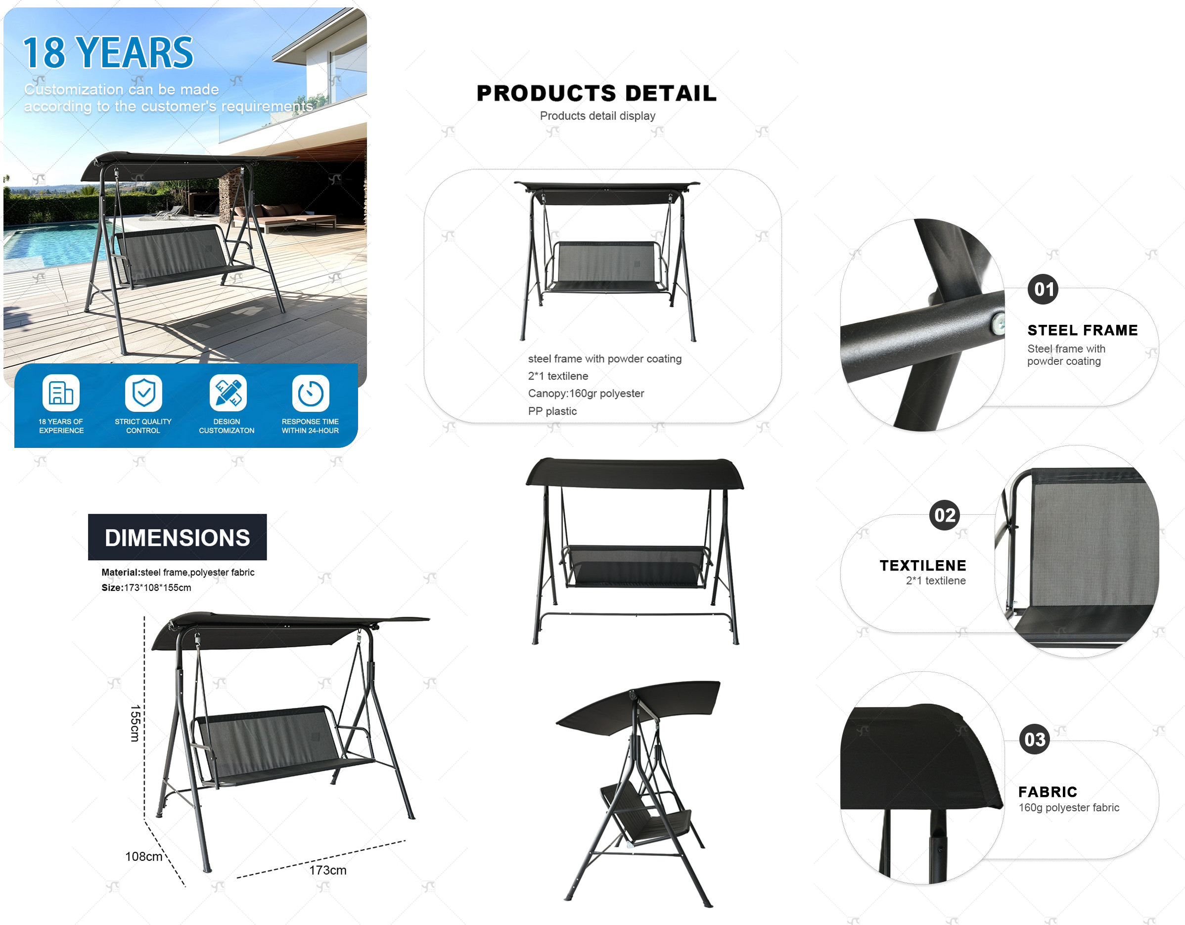 3-Seater Outdoor Steel Frame Swing Chair